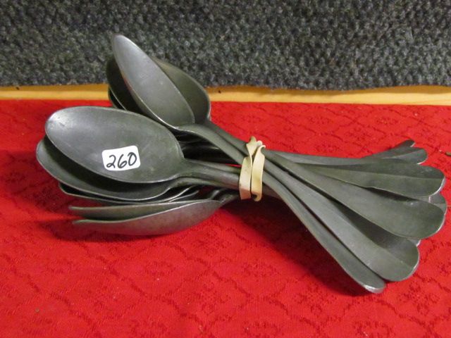 Early 1800's, 13 hand- molded American Pewter Spoons