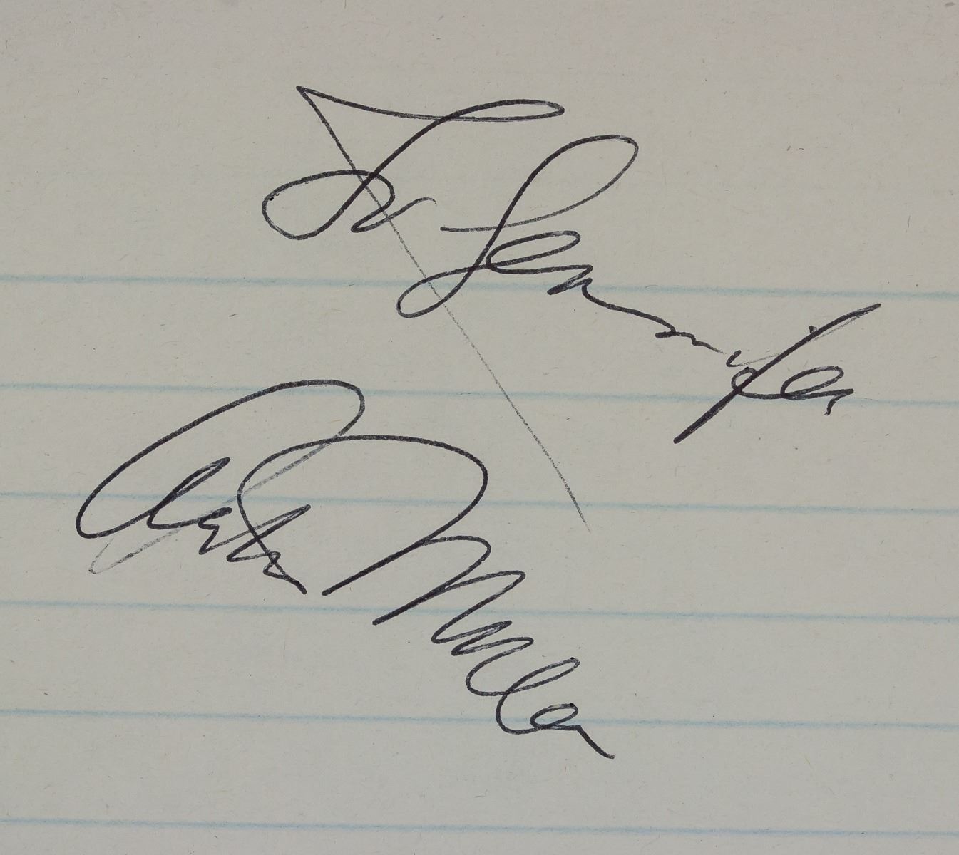 An autograph of Arthur Miller with small inscription, “For Jennifer” with signature below. The autograph was received by the current owner while she assisted with an interview of the playwright while working for a Japanese newspaper in New York, circa 2001. The interview was in connection with the Praemium Imperiale prize. 27.5 x 21.5 cm (10.8 x 8.5 inches). PROVENANCE: Private American collection (Florida, United States).