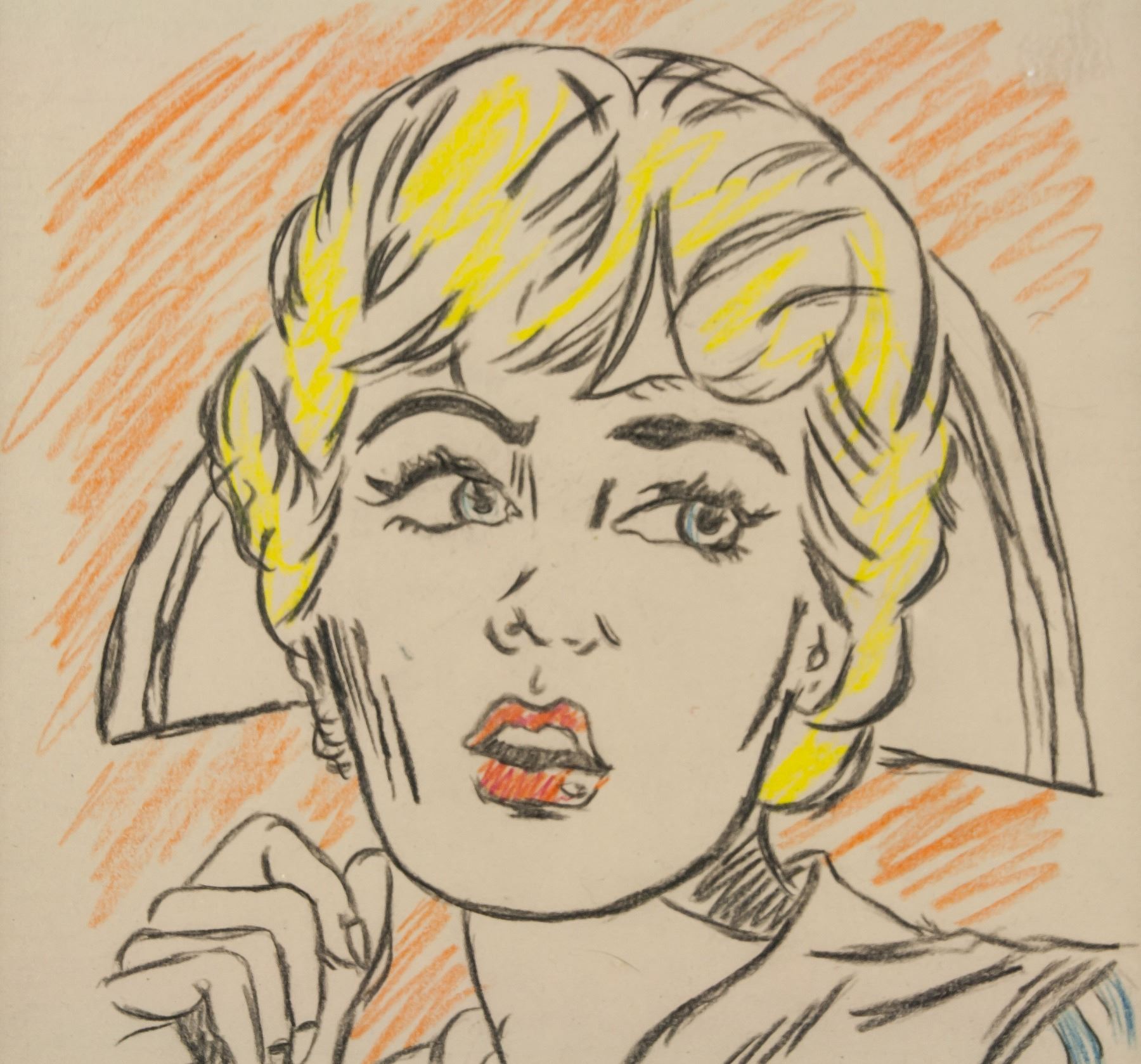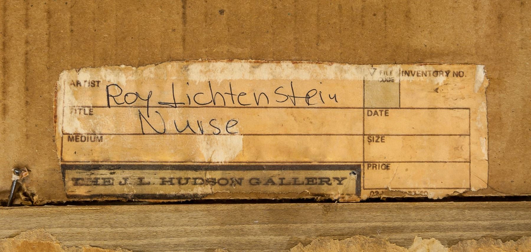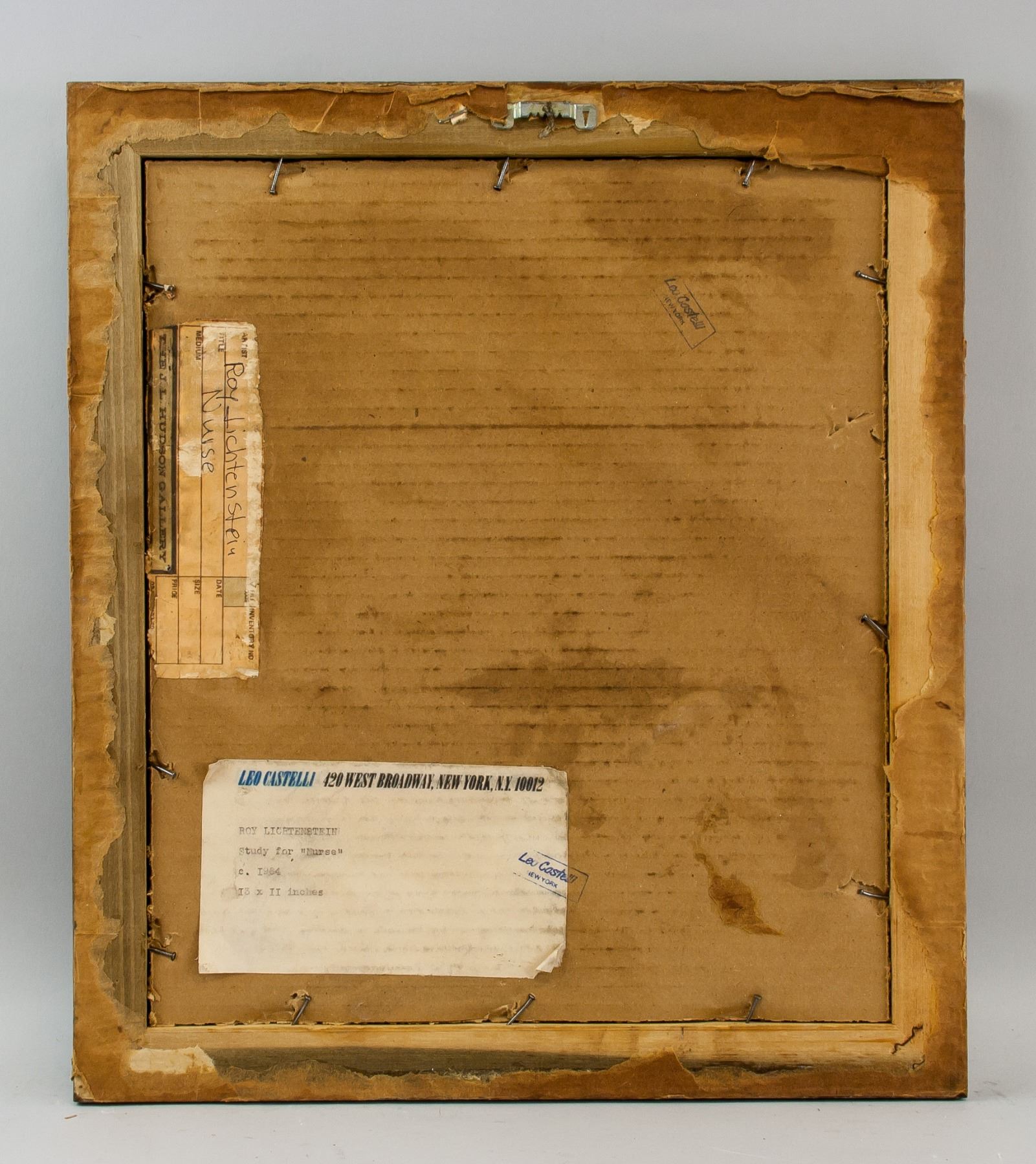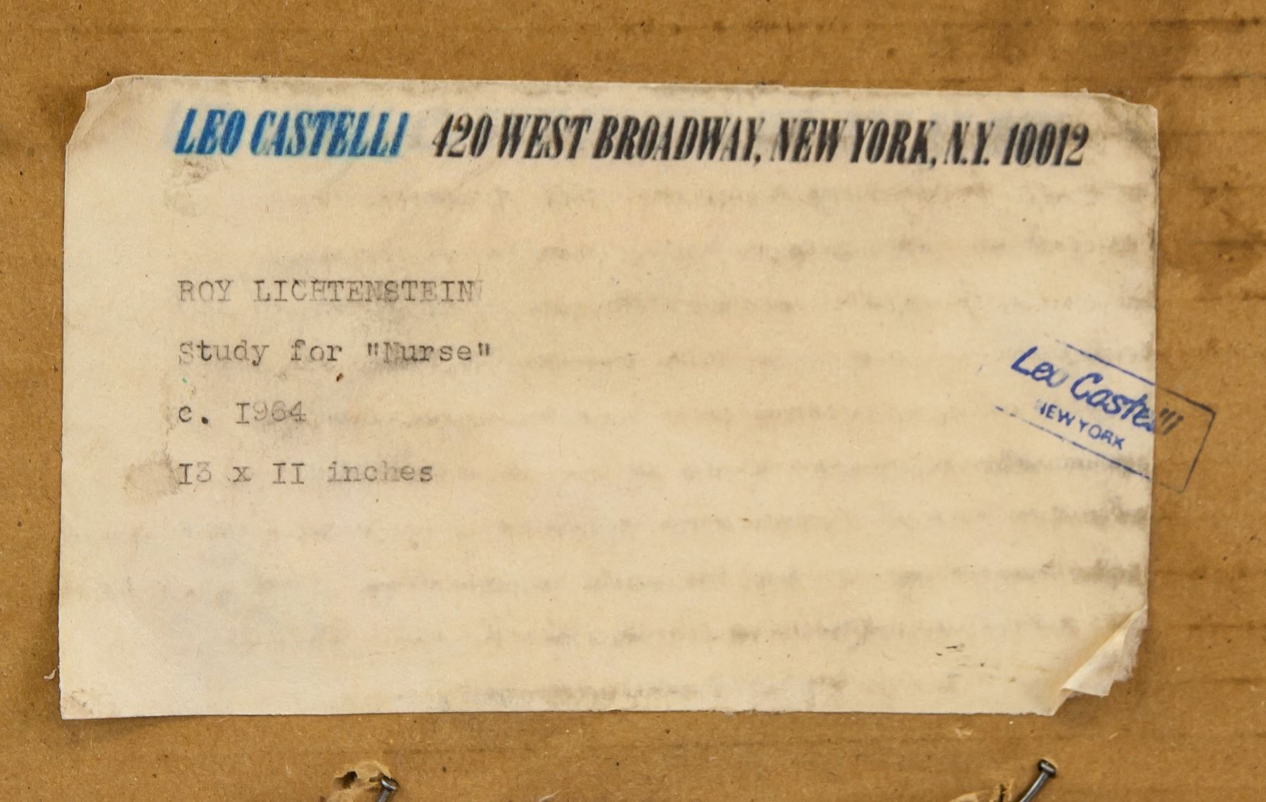 Pencil on paper. Featuring a portrait of a woman and entitled, 'Study of Nurse." Signed Roy Lichtenstein near the lower right corner. LEO CASTELLI 420 WEST BROADWAY, NEW YORK, N.Y. 10012. Inscribed 'ROY LICHTENSTEIN,' Study for 'Nurse' c. 1984 18 x 11 inches. Another gallery label 'The JL HUDSON GALLERY' inscribed "Roy Lichtenstein and entitled, 'Nurse.' 33 x 27.5 cm (13 x 10.8 inches). PROVENANCE: Private American collection (New York, NY)