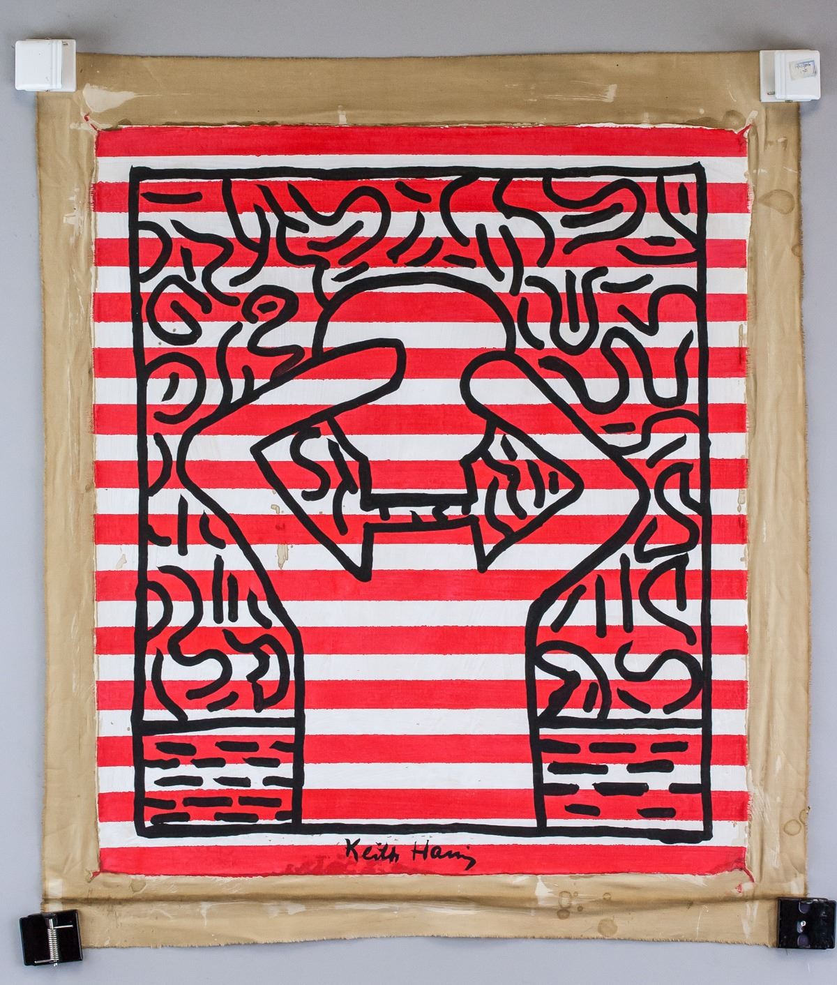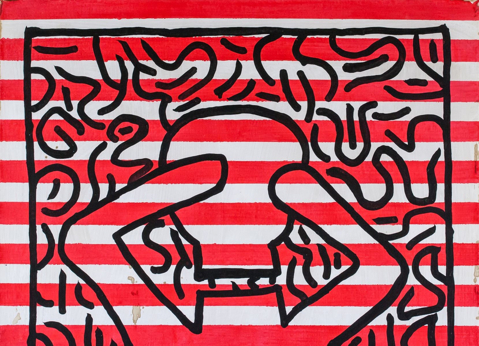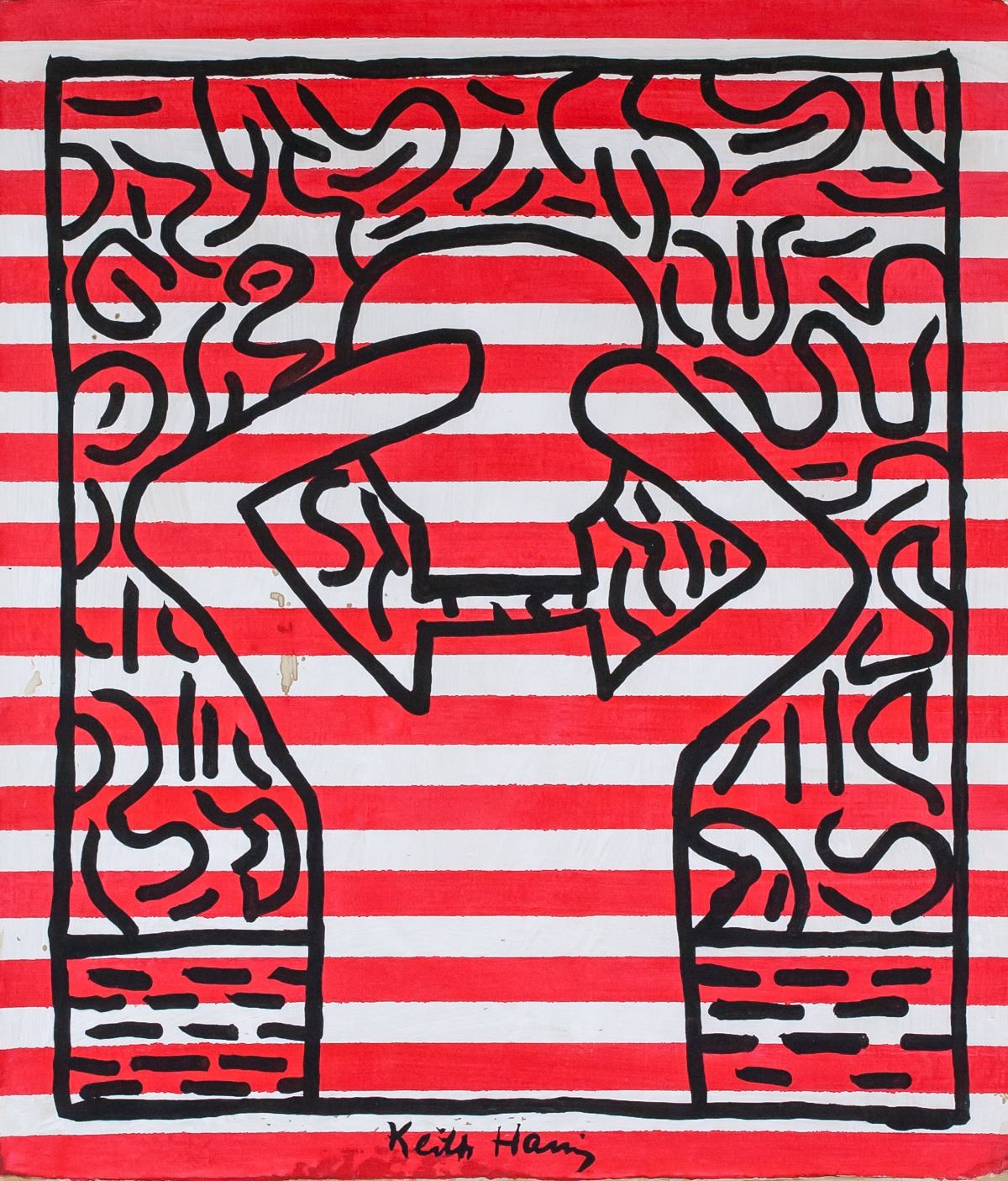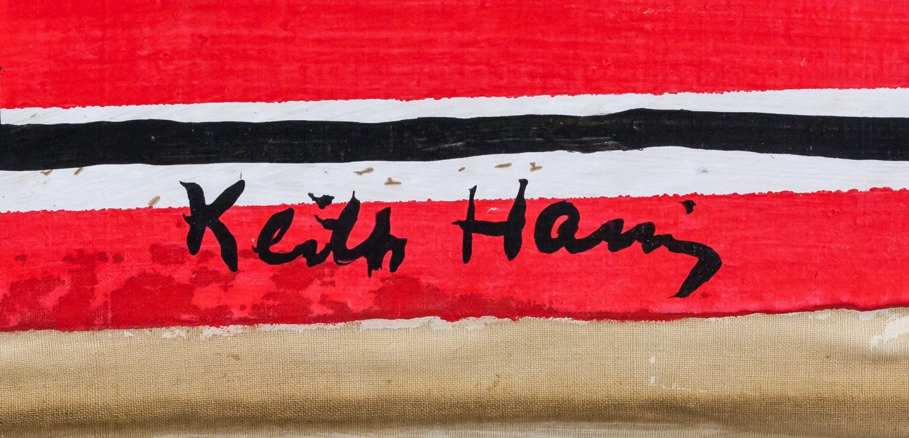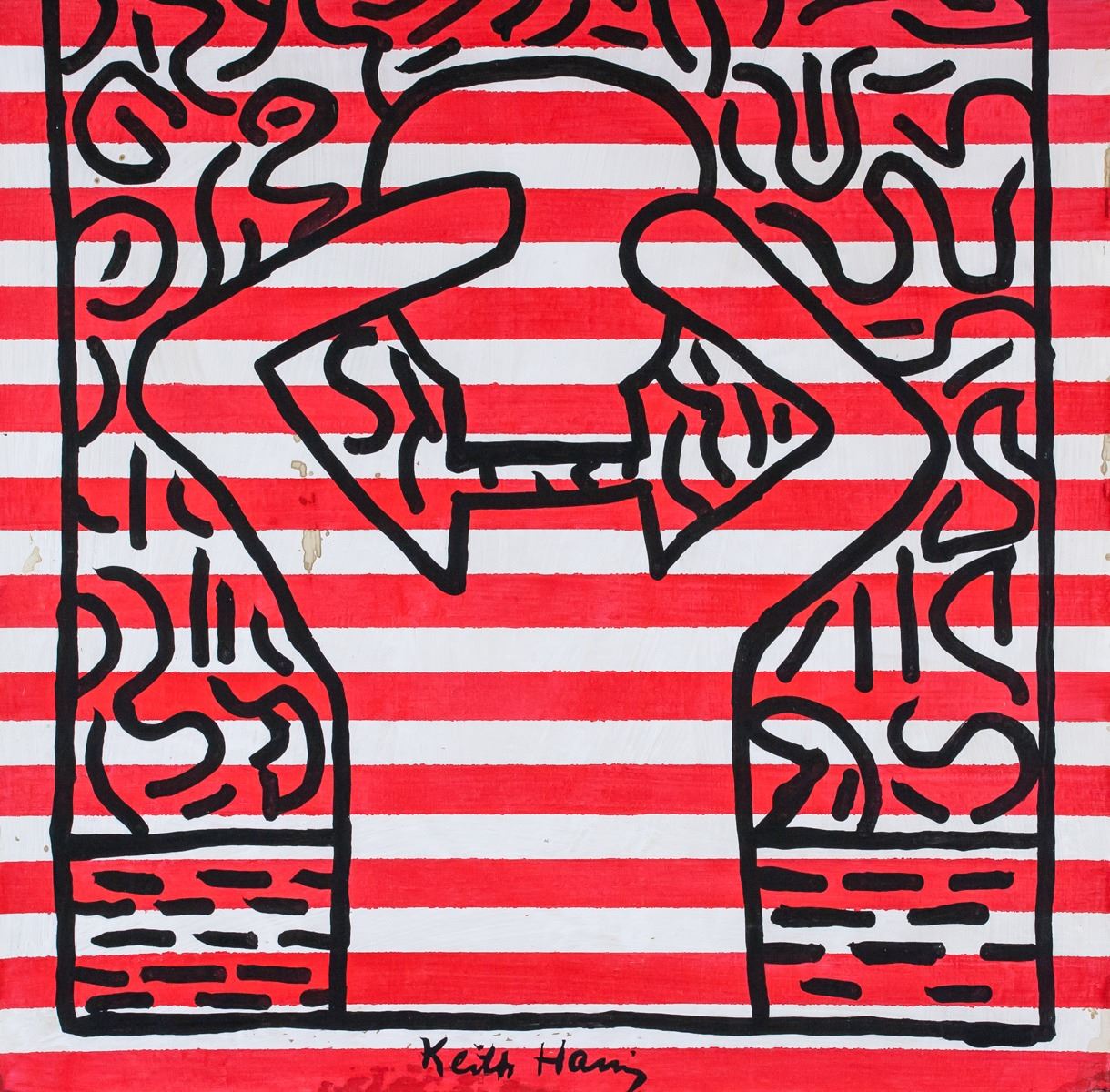 Oil on canvas. Featuring a figure holding two hands to his head. Signed Keith Haring on the lower edge. 54 x 47 cm (21 x 18.5 in). Provenance: This lot carries limited provenance from an Upper New York estate