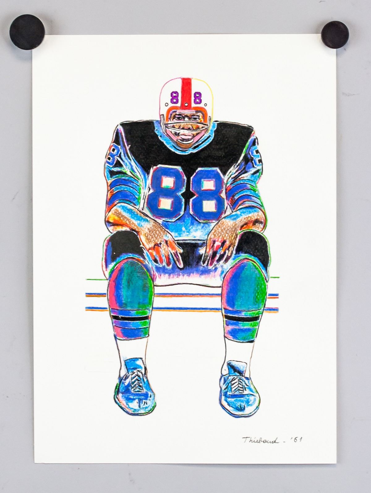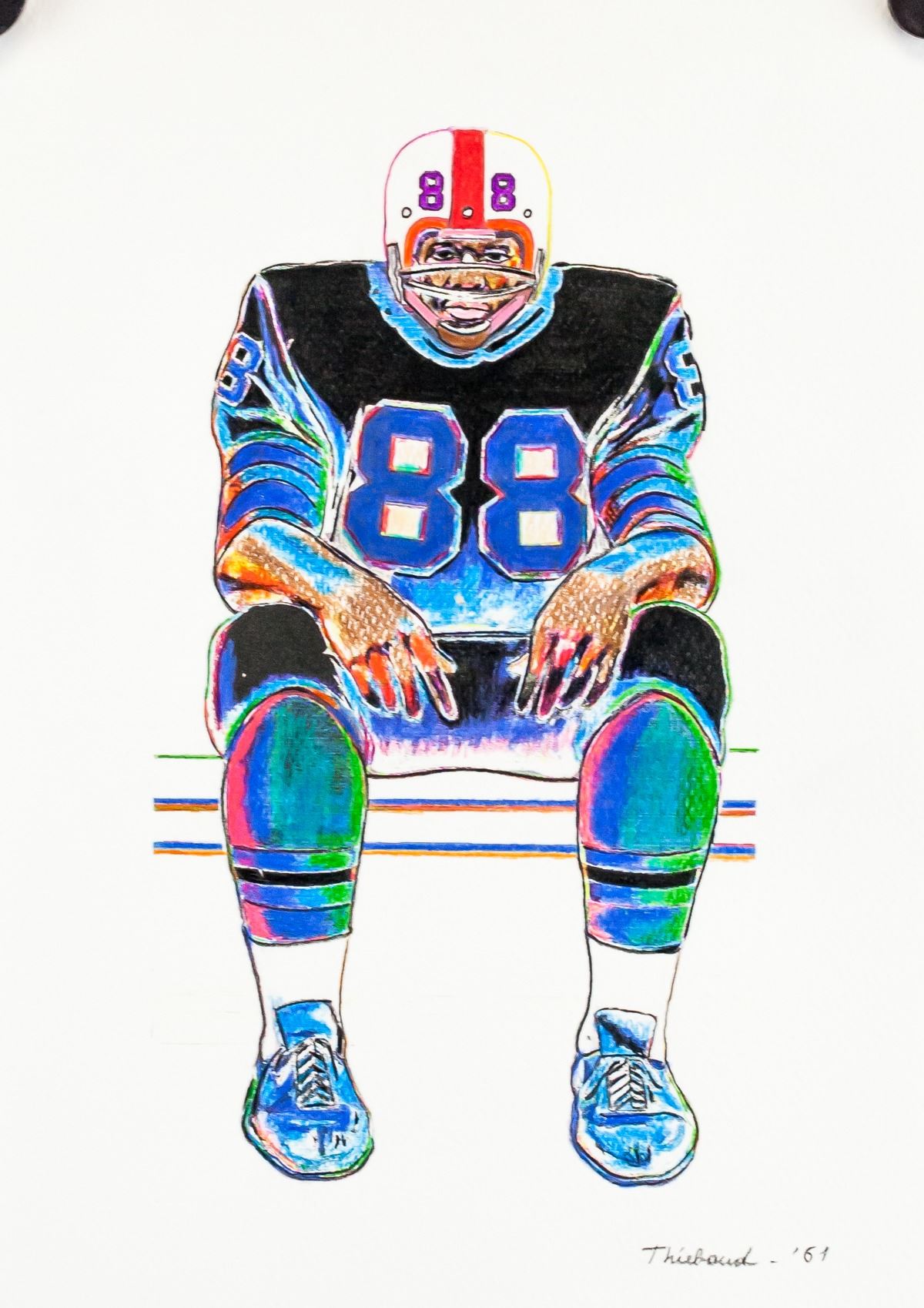 Mixed media on paper. Featuring a portrait of a seated American football plater. Signed and inscribed '61 on the lower right corner. 29.5 x 21 cm (11.5 x 8.25 in). PROVENANCE: This lot carries limited provenance from an Upper New York estate