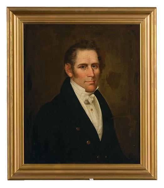 early 19th century, oil on canvas, unsigned. Depicting a half length portrait of a gentleman, probably by a skilled itinerant artist; 29.5" high x 24" wide (sight).
