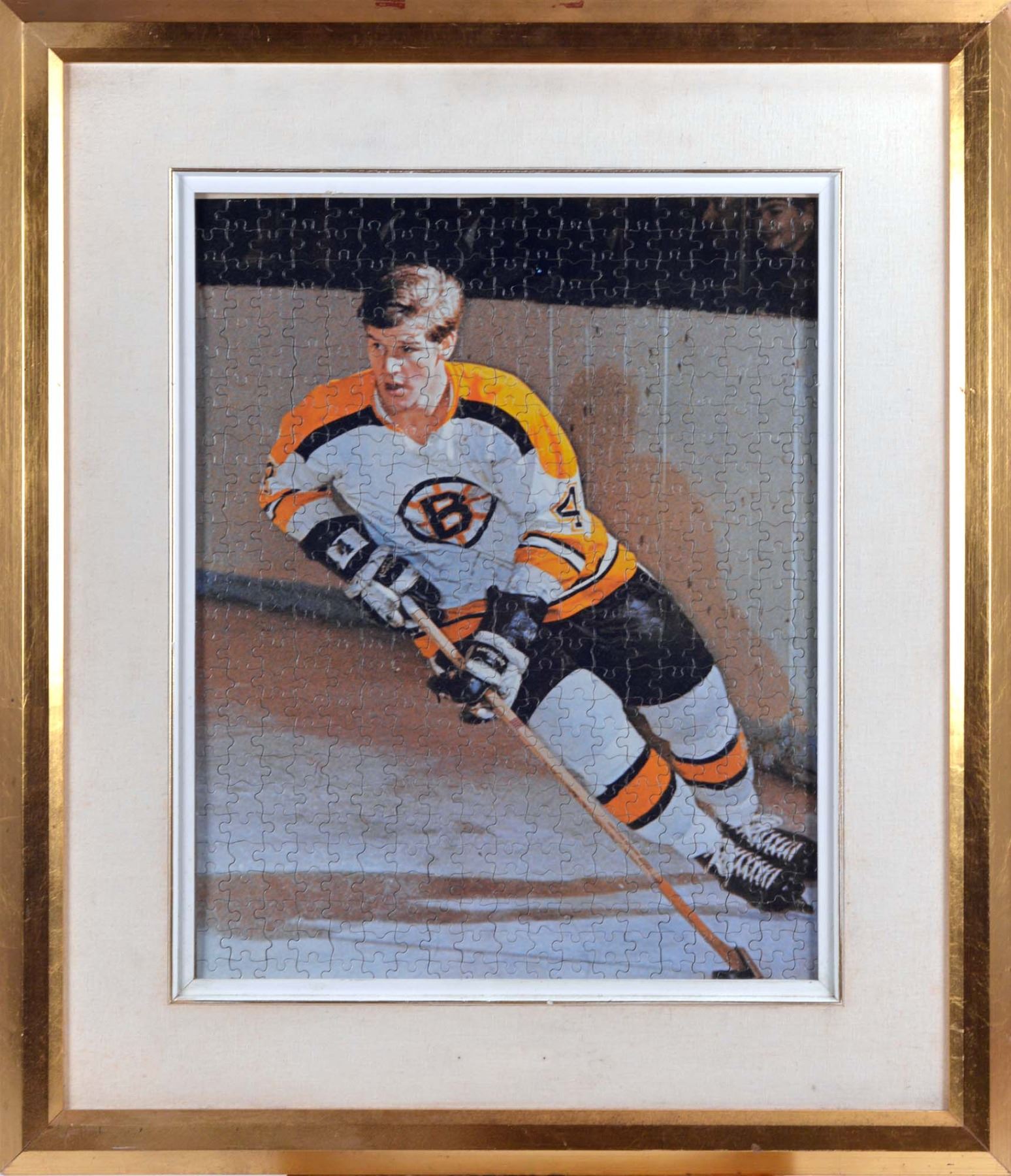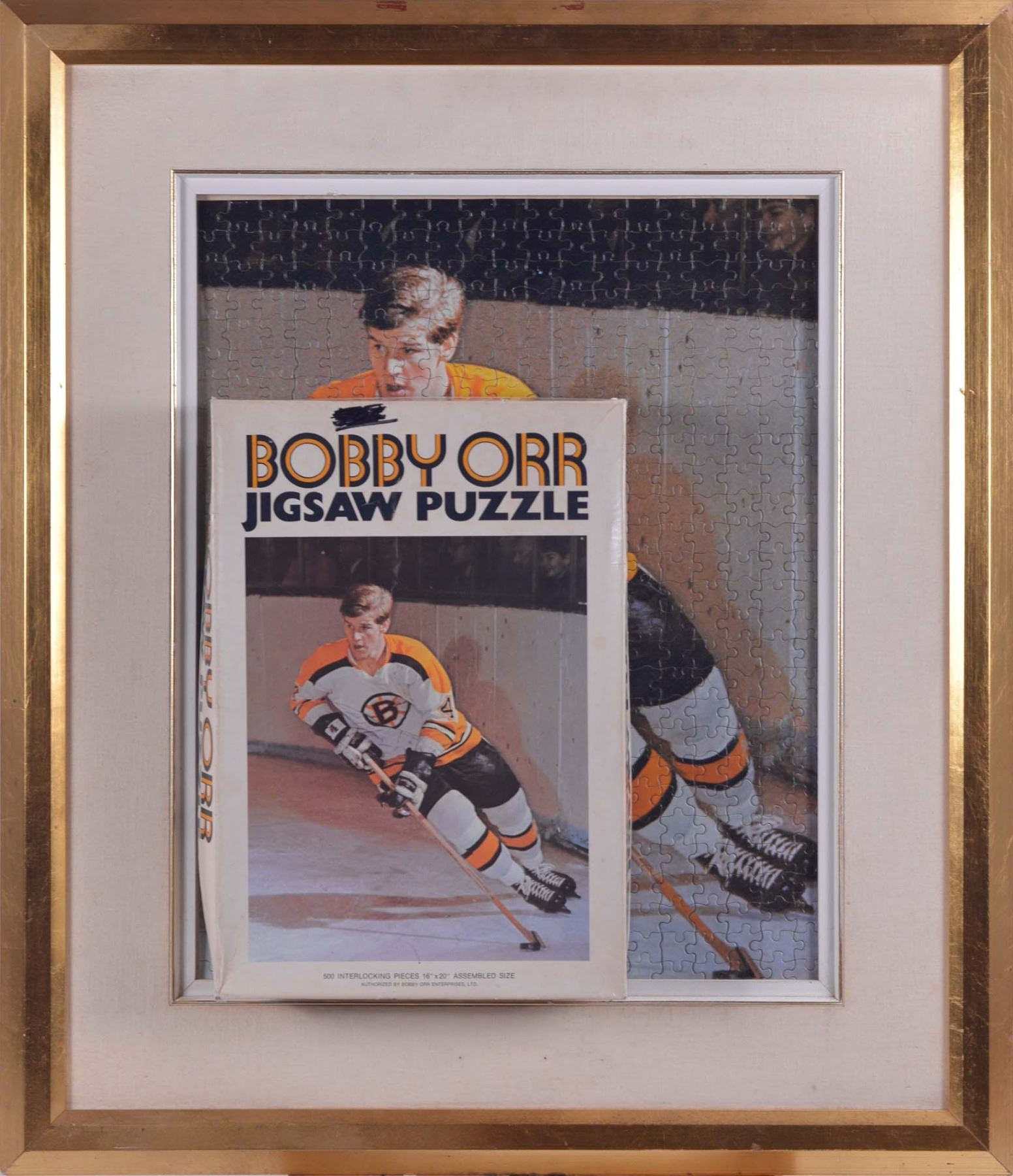 Bobby Orr legend puzzle made by American Publishing corp. Framed and unglued, complete with the original box Perfect condition