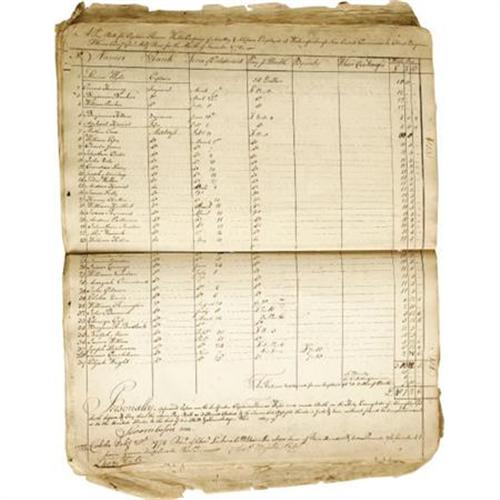 <B>American Revolution - The Account Book and Pay Rolls of the second oldest U.S. Army post in the United States.</B></I> Manuscript account book, 92 leaves 9" x 13.5", Carlisle, Pennsylvania, May, 1778 to July, 1779 kept by Major Charles Lukens, Commissary of Military Stores for the supply barracks established by the Continental Congress at Carlisle in 1776. Now home to Carlisle Barracks and the Army War College, it is the second oldest U.S. Army post in the country after West Point. Originally established in 1757 by the British as a staging point to mount expeditions against the Ohio Valley, the post was abandoned in the mid 1760s following the end of Pontiac's rebellion. During the American Revolution the fort again became a valuable strategic site, this time against the British. Patriotically named "<I>Washingtonburgh</B></I>" from 1776 to the end of the war, the post served as one of the main centers for arms ordnance supply, manufacture and repair together with the armory at Springfield, Massachusetts. The post also served as an artillery school under the direction of Captain Isaac Coren. The account book, covering a single year in the post's existence, provides superb detail on the operations of this critical post. A portion of the book consists of signed receipts for a wide variety of activities including the production of charcoal, the purchase of all manner of articles from compasses to bee's wax, candles, and even stoves. Other payments include wood cut on neighboring properties, payments for brick and shingles, as well as pay for services rendered by both civilians and soldiers. One entry notes the receipt of "<I>14 Saw logs for the Use of the Publick sic Works & Gun Carriages...</B></I>" Most of the payments were made by Major Charles Lukens, Commissary of Military Stores. The book also includes numerous payrolls for the "<I>Company of Artillery & Artificers employed at Washingtonburgh Near Carlisle under command of Col. Benjamin Flowers Commissary Genl.</B></I>" Interestingly, there are numerous entries for "<I>coaling</B></I>" which would suggest that there was an iron furnace active at or near the site which would have made the production of artillery possible on-site. More research is necessary to ascertain this for certain however. At the very least the charcoal would have been necessary for smiths engaged in repair work and in the manufacture of cartridges. (See George Washington to Henry Knox, January 8, 1778 in The George Washington Papers at the Library of Congress, 1741-1799 for more information.) A superb research tool documenting an early and historic U.S. military installation providing critical supplies essential to the success of the American Revolution. Paper cover split at spine with much post-war doodling, pages overall quite clean with ragged margins, overall very good. <I>Ex. Henry E. Luhrs Collection.</B></I><BR><BR><BR><b>Shipping:</b> Flat Material, Small (<a target="_blank" href="http://www.heritageauctions.com/common/shipping.php">view shipping information</a>)