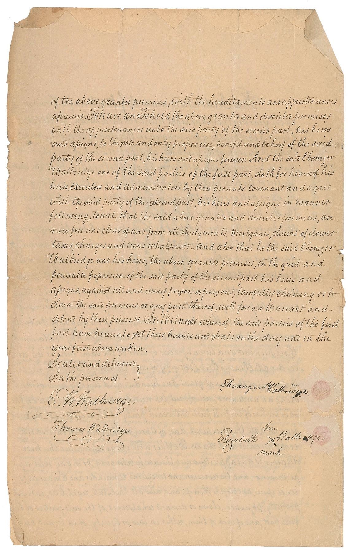 Four items signed by or related to a notable statesman or soldier from the Revolutionary War, including: a manuscript DS signed by Ebenezer Walbridge, who served as a lieutenant in the regiment of Green Mountain Boys, and then later as a lieutenant-colonel in Vermont's Bennington regiment; an ADS signed by Ezekiel Cornell, nicknamed 'Old Snarl,' a brigadier general of Rhode Island state troops who later represented the state in the US Continental Congress; an ink signature of William Bradford, the second United States Attorney General who served under Daniel Roberdeau and later earned the rank of lieutenant colonel in the 11th Pennsylvania Regiment commanded by Richard Hampton; and a manuscript DS signed by Thomas Campbell, endorsed on the reverse in an unknown hand by "Ritchie & Clymer," the business partnership of Robert Ritchie and George Clymer, the latter a signer of the Declaration of Independence from Pennsylvania, who served as the first president of the Philadelphia Bank. In overall very good to fine condition.