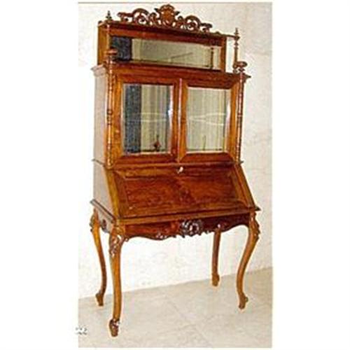 AMERICAN ROSEWOOD SLANT FRONT DESK SIGNED THOMAS BROOKS CIRCA 1860. The cabriole legs supporting a slant lid desk having a beautiful interior of 4 inlaid drawers and a new leather writing surface. The 2 mirrored doors opening to reveal a wonderful flame birch interior. The whole supporting a mirrored and carved gallery H: 75 inches W: 37 inches D: 19 inches. *Condition: Excellent- French polished (refinished at one time)<BR>