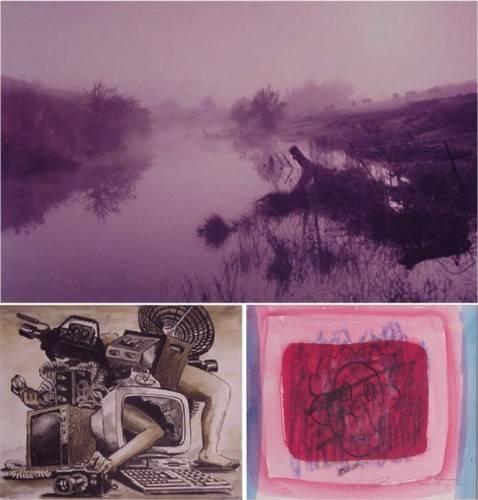 American School, Eugene Costas, J. C. Smith (three) MISTY MORNING, 1985, black & white photograph, 8 1/2 x 13 3/4", signed and dated lower right, framed with glass; together with Eugene Costas, FACE, watercolor on paper, 7 x 8 1/2", signed lower right, framed with glass, two pinholes top center area; together with J. C. Smith, MODERN LIFE, watercolor on paper, 10 1/2 x 13 1/2", framed with glass, natural soft creases. (3)