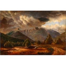 American School, Mid-19th Century, Approaching Storm, Unsigned, Oil on canvas, 9 x 13 in...