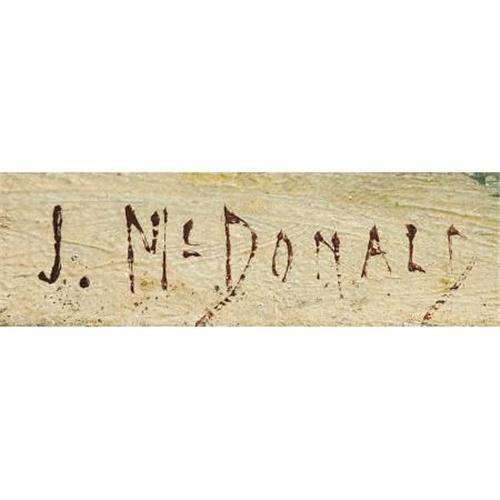 <B>AMERICAN SCHOOL (20th Century)</B></I><BR><I>Country Road</B></I><BR>Oil on canvas<BR>15 x 23-1/4 inches (38.1 x 59.1 cm)<BR>Signed lower right: <I>J. McDONALD</B></I><BR> <B>Condition Report:</B> Stretcher marks, old varnish, surface dirt.<BR><BR><b>Shipping:</b> Framed - without Glass, Medium (<a target="_blank" href="http://www.heritageauctions.com/common/shipping.php">view shipping information</a>)
