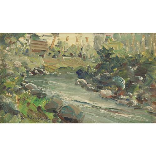 American School, The Mill Stream, c.1920;oil/canvas laid down on board,6in. x 10in., signed indistinctly