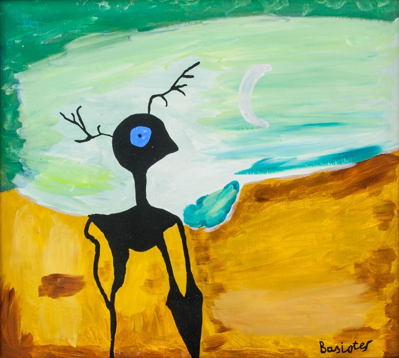 Oil on canvas, framed. Featuring a landscape scene with an surrealist animal. Signed illegibly on the lower right corner. 40.5 x 45 cm (15.9 x 17.7 inches), framed size: 51 x 55.5 cm (20.1 x 21.9 inches)