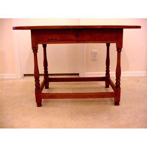 American Tavern Table Late 18th century to Early 19th century Pine top, maple stretcher. Base 39? wide 26 ¼" deep 25 ½" high with one drawer.