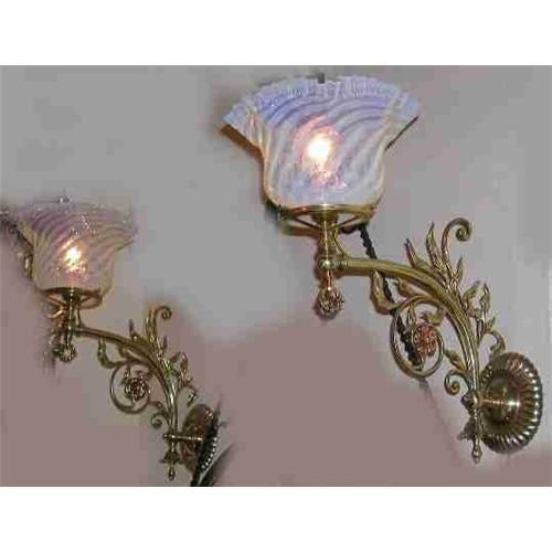 American Victorian Sconces. Floral design. Gas keys. Opalescent swirl shades.