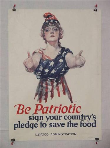 American WWI Poster, "Be Patriotic – Sign Your Country's Pledge to Save the Food", Artist-Paul Stahr, Printer-The W.F. Powers Co. Litho.-NY, 29" x 21", Condition – Good: Folding Creases, Corner Creases on Right Side, Small Border Tears, Soiling,