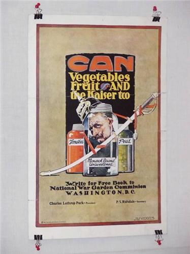 American WWI Poster, "Can Vegetables Fruit AND the Kaiser Too etc.", Artist-J. Paul Verrees, Printer-Information Unclear, 20 3/4" x 14", Condition – Fair: Border Tears and Creasing; On Cardstock,