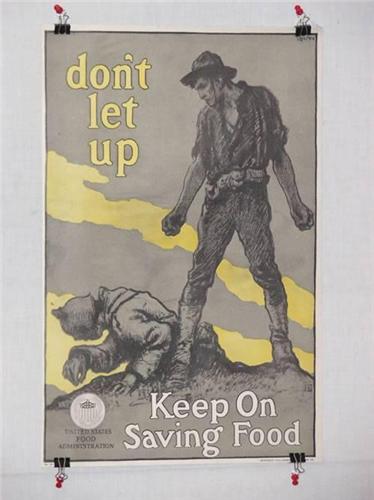 American WWI Poster, "Don't Let Up Keep on Saving Food", Artist-F. Luis Mora, Printer-Wynkoop Hallenbeck Crawford Co., 20 3/4" x 13 1/2", Condition – Good: Some Creasing; Linen Backed,