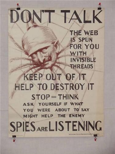 American WWI Poster, "Don't Talk etc. – Spies ar