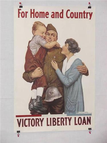 American WWI Poster, "For Home and Country Victory Liberty Loan", Artist-Alfred Everitt Orr-18, Printer-American Lithographic Co.-NY, 30" x 20", Condition – Good: Fold Creases and Modest Border Tears,