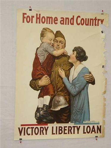 American WWI Poster, "For Home and Country Victory Liberty Loan", Artist-Alfred Everitt Orr-18, Printer-American Lithographic Co.-NY, 40" x 30", Condition – Poor/Fair: Large Penetrating Tears (Up to 11"), Considerable Right Side Breakaway Tears and Losses, Staining, Other Border Tears and Creases, Folding Creases,