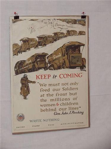 American WWI Poster, "Keep it Coming etc. Waste Nothing(United States Food Administration)", Artist-Illian, Printer-The W.F. Powers Co. Litho-NY, 29" x 21", Condition – Good: 2 Margin Tears to Upper Right Corner,