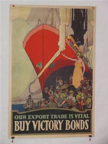 American WWI Poster, "Our Export Trade is Vital Buy Liberty Bonds", Artist-Arthur Keelor, Printer-Not Provided, 35 3/4" x 23 3/4", Condition – Good: Some Modest Creasing; Linen Backed w/ Grommets,