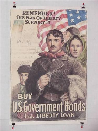 American WWI Poster, "Remember! The Flag of Liberty – Support It! etc. 3rd Liberty Loan", Artist-Not Provided, Printer-Heywood Strasser and Voigt Litho. Co.-NY, 29 1/2" x 19 3/4", Condition – Good: Folding Crease; Linen Backed,