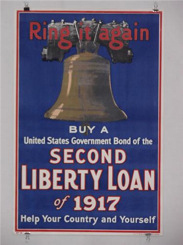 American WWI Poster, "Ring It Again - Buy a United States Government Bond of the Second Liberty Loan of 1917 etc.", Artist-Not Provided, Printer-Ketterlinus-Philada., 30" x 20", Condition: Good - No Major Apparent Problems,