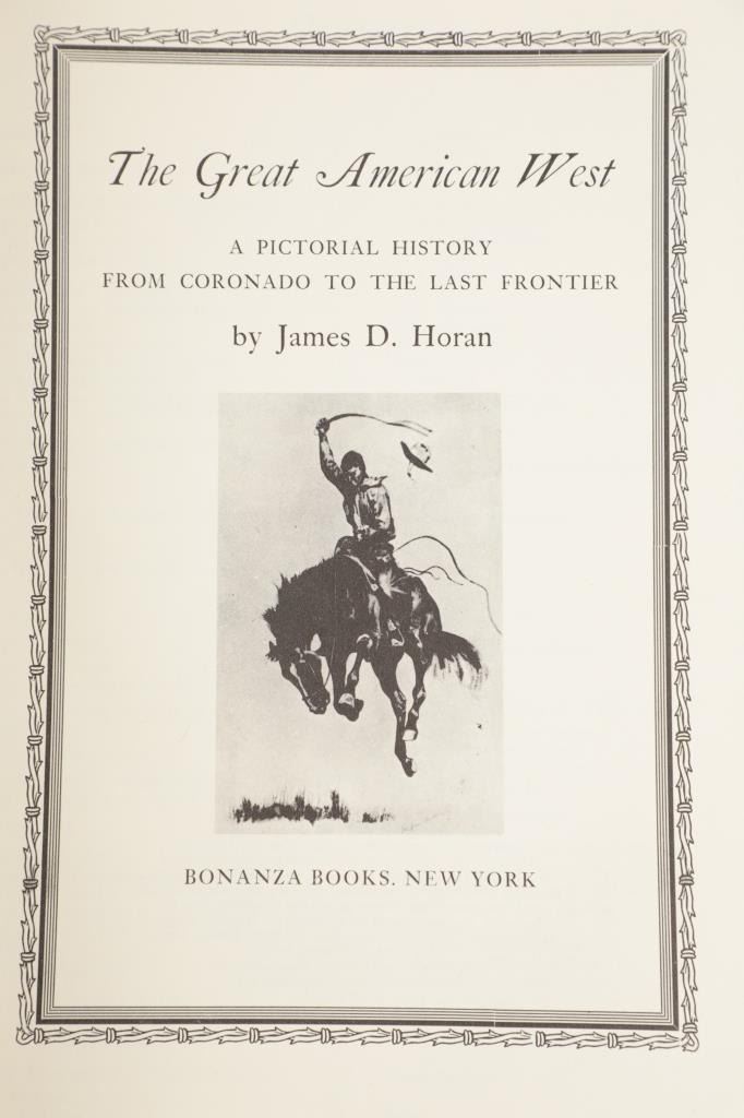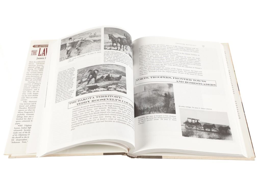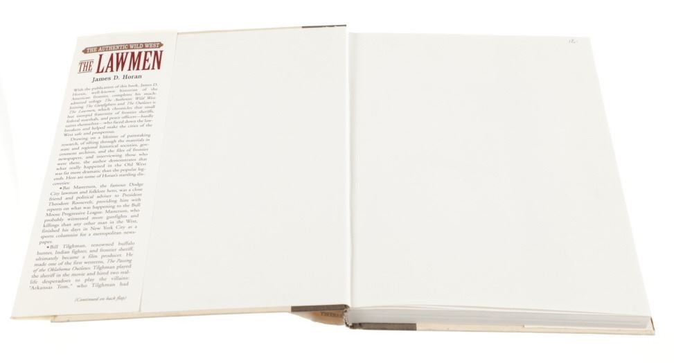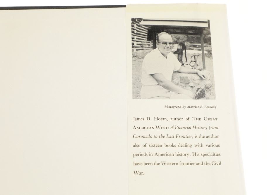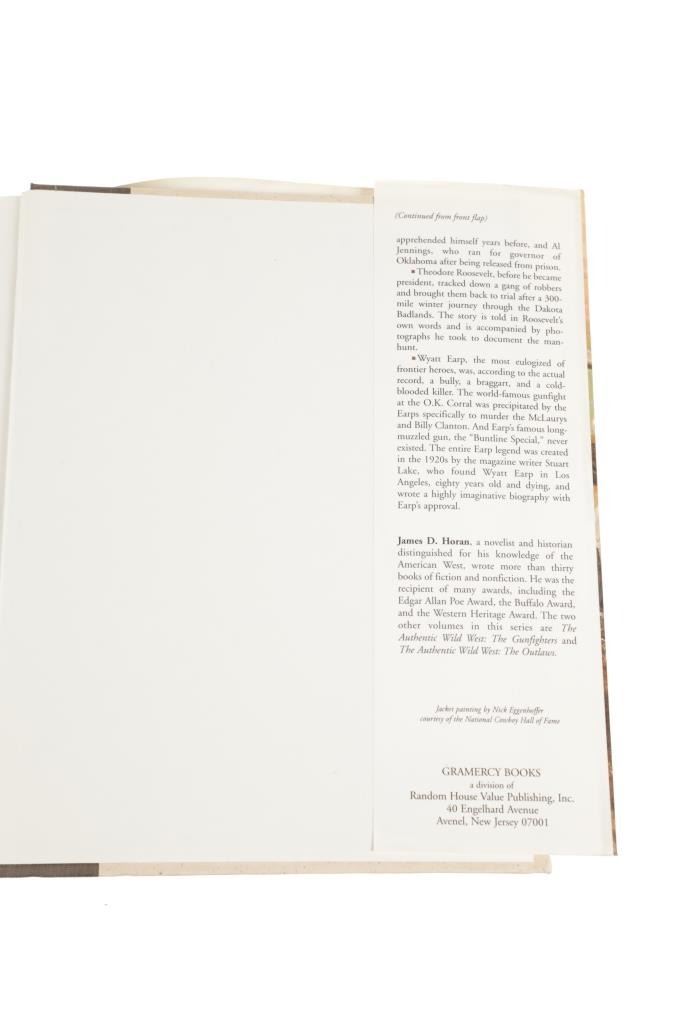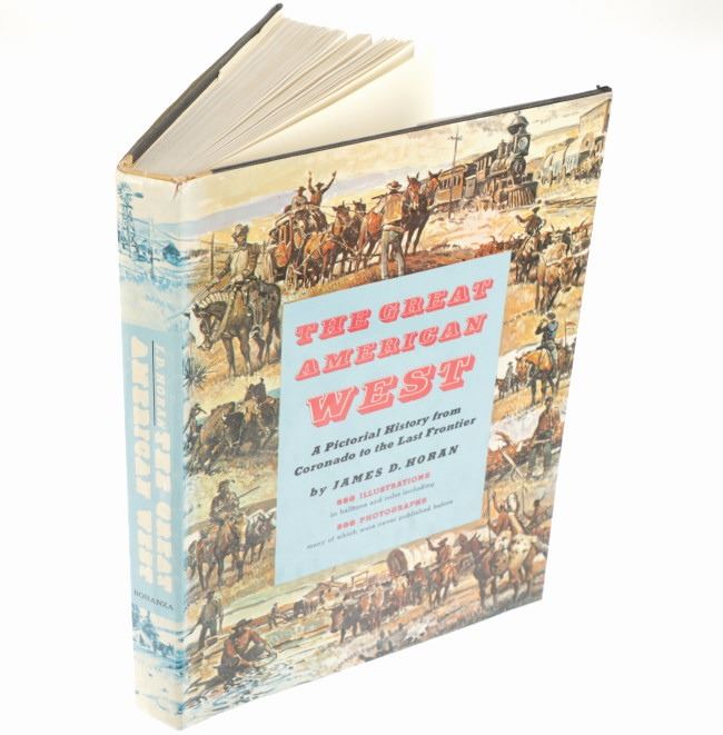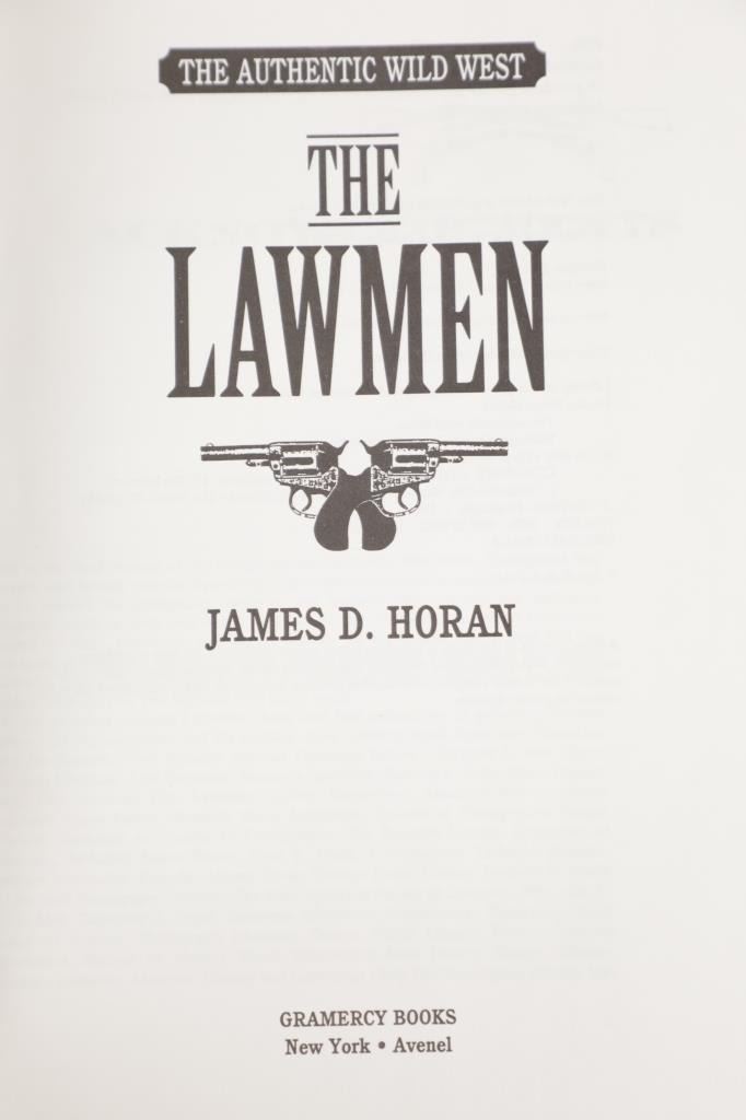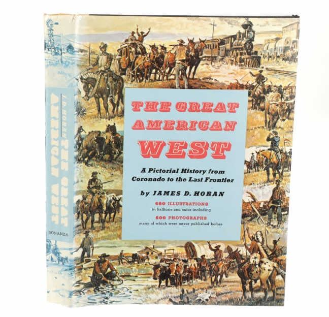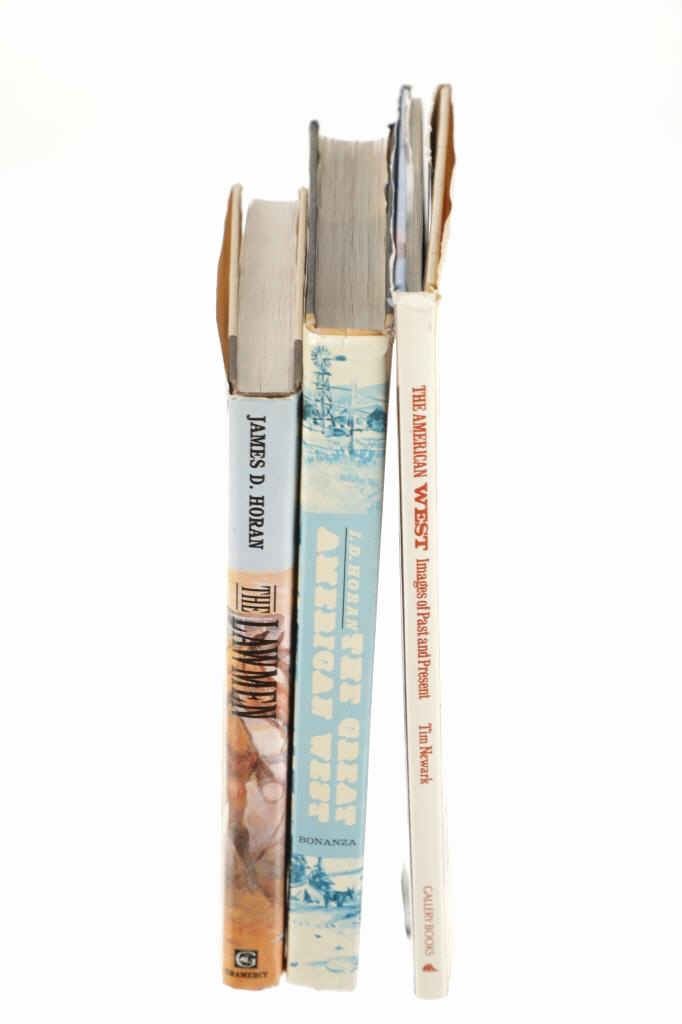 Featured in this lot is a collection of three (3) Western History books from various authors. The first book is titled, "The American West - Images Of Past And Present" by Tim Newark in 1985. The book outlines the last days of the Frontier Days and the coming of new years and technology. The book has numerous colored illustrations and photos of Native Americans, cowboys, the old west, and new advancements in the modern day. Although the Frontier days are gone, one can still feel the gut thrill of the West in its soaring cities and in its vast, inspiring landscapes. The book is in good condition with no signs of obvious damage. It measures 12 3/4" L x 9 1/4" W x 1/4" D. The second book is titled, "The Great American West - A Pictorial History from Coronado to the Last Frontier" by James D. Horan. Here is a full western story from the days of the conquistadors to the twentieth century, in an account notable not only for its comprehensiveness, but also for its amazing collection of photographs which show all aspects of the West as it actually was. this book presents a thrilling panoramic view of the vast and wonderfully varied land that lies between the Mississippi Valley and the Pacific Ocean, and traces of the exciting story of how Americans explored it, settled and developed it, established law and order and made it great. The book features 650 illustrations and 500 photographs of the great American West. The book is in good condition overall with no obvious signs of damage. It measures 12" L x 9" W x 1 1/4" D. The third book in this collection is "The Lawmen" by James D. Horan in 1996. This book follows frontier sheriffs, federal marshals, and peace officers, who faced the lawbreakers and helped make the cities of the West safe and prosperous. The book is in good condition overall with no signs of obvious damage. The interior pages are in good condition with no tears or signs of foxing. The book measures 11" L x 8 1/2" W x 1 1/8" D.