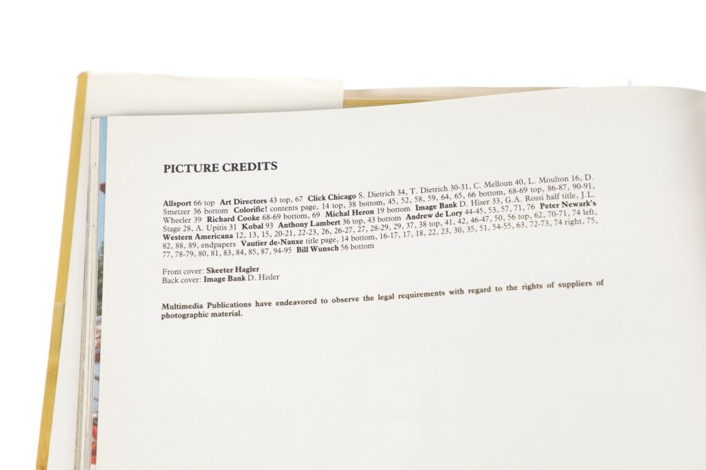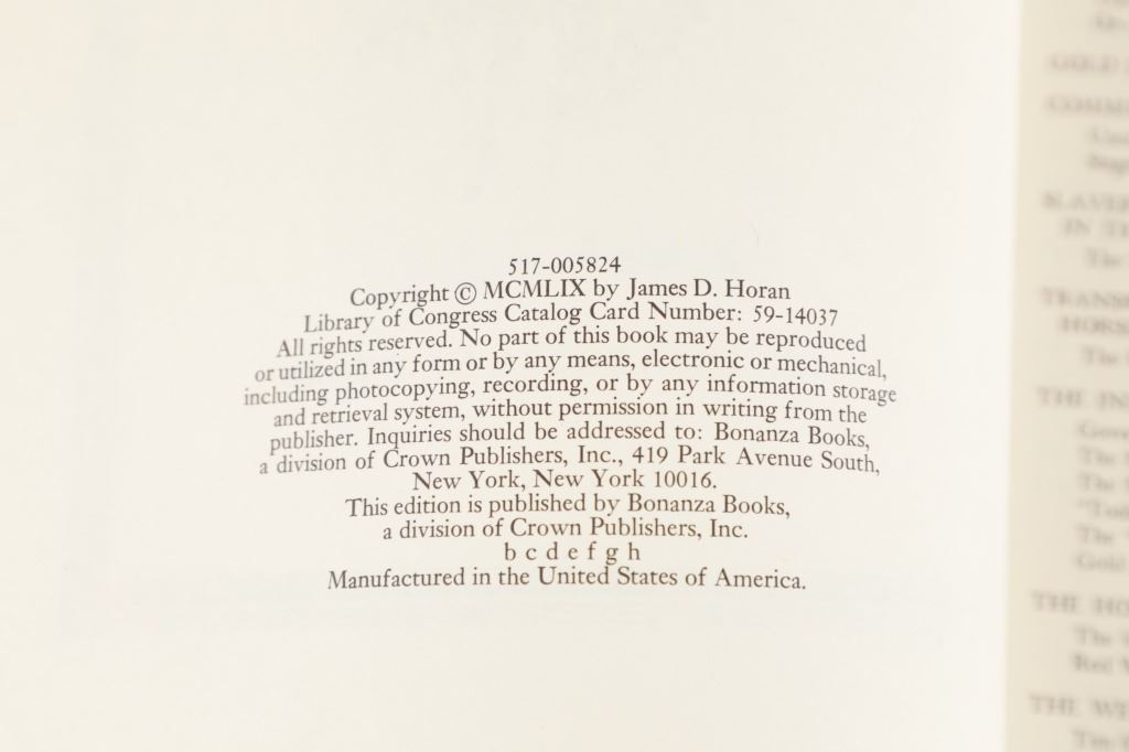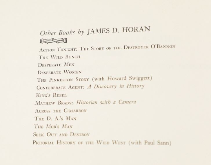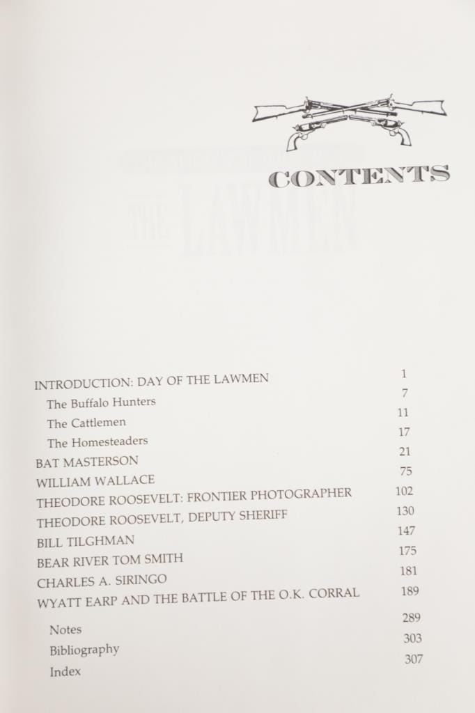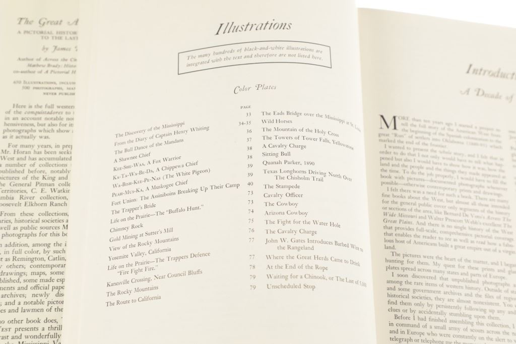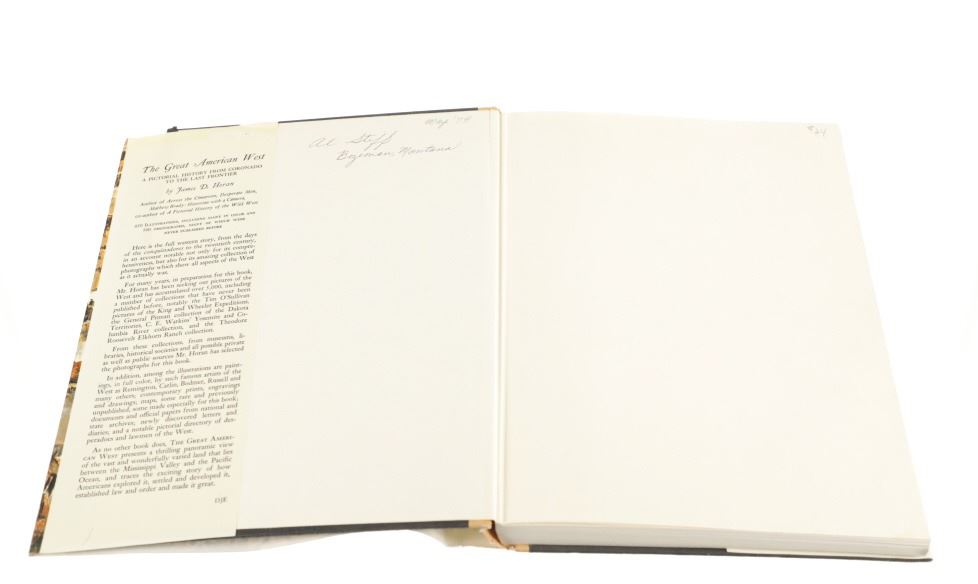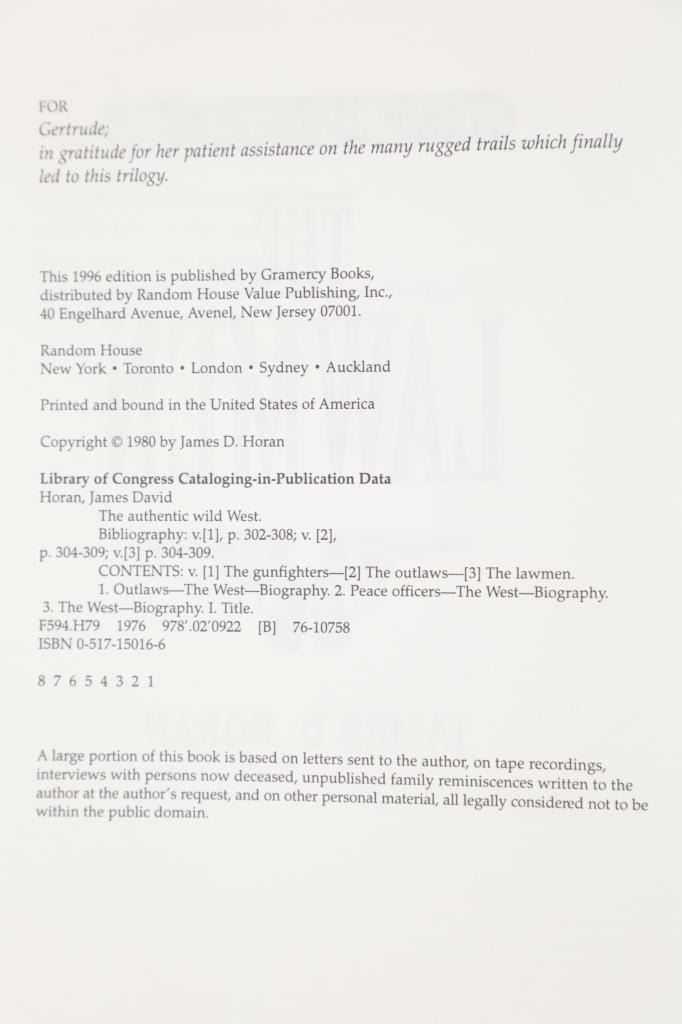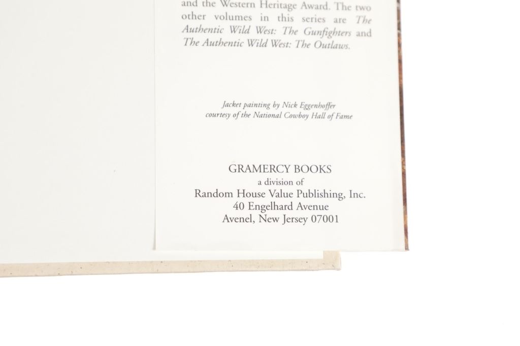 Featured in this lot is a collection of three (3) Western History books from various authors. The first book is titled, "The American West - Images Of Past And Present" by Tim Newark in 1985. The book outlines the last days of the Frontier Days and the coming of new years and technology. The book has numerous colored illustrations and photos of Native Americans, cowboys, the old west, and new advancements in the modern day. Although the Frontier days are gone, one can still feel the gut thrill of the West in its soaring cities and in its vast, inspiring landscapes. The book is in good condition with no signs of obvious damage. It measures 12 3/4" L x 9 1/4" W x 1/4" D. The second book is titled, "The Great American West - A Pictorial History from Coronado to the Last Frontier" by James D. Horan. Here is a full western story from the days of the conquistadors to the twentieth century, in an account notable not only for its comprehensiveness, but also for its amazing collection of photographs which show all aspects of the West as it actually was. this book presents a thrilling panoramic view of the vast and wonderfully varied land that lies between the Mississippi Valley and the Pacific Ocean, and traces of the exciting story of how Americans explored it, settled and developed it, established law and order and made it great. The book features 650 illustrations and 500 photographs of the great American West. The book is in good condition overall with no obvious signs of damage. It measures 12" L x 9" W x 1 1/4" D. The third book in this collection is "The Lawmen" by James D. Horan in 1996. This book follows frontier sheriffs, federal marshals, and peace officers, who faced the lawbreakers and helped make the cities of the West safe and prosperous. The book is in good condition overall with no signs of obvious damage. The interior pages are in good condition with no tears or signs of foxing. The book measures 11" L x 8 1/2" W x 1 1/8" D.