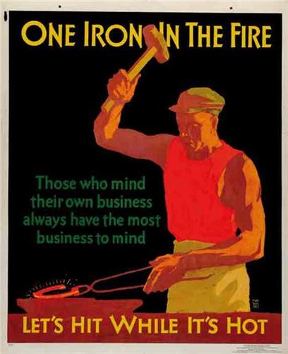 Title: ONNE IRON IN THE FIRE - Author: WILLARD FREDERIC ELMES - Litograph - 1929 - 110x90 - Quality: A -