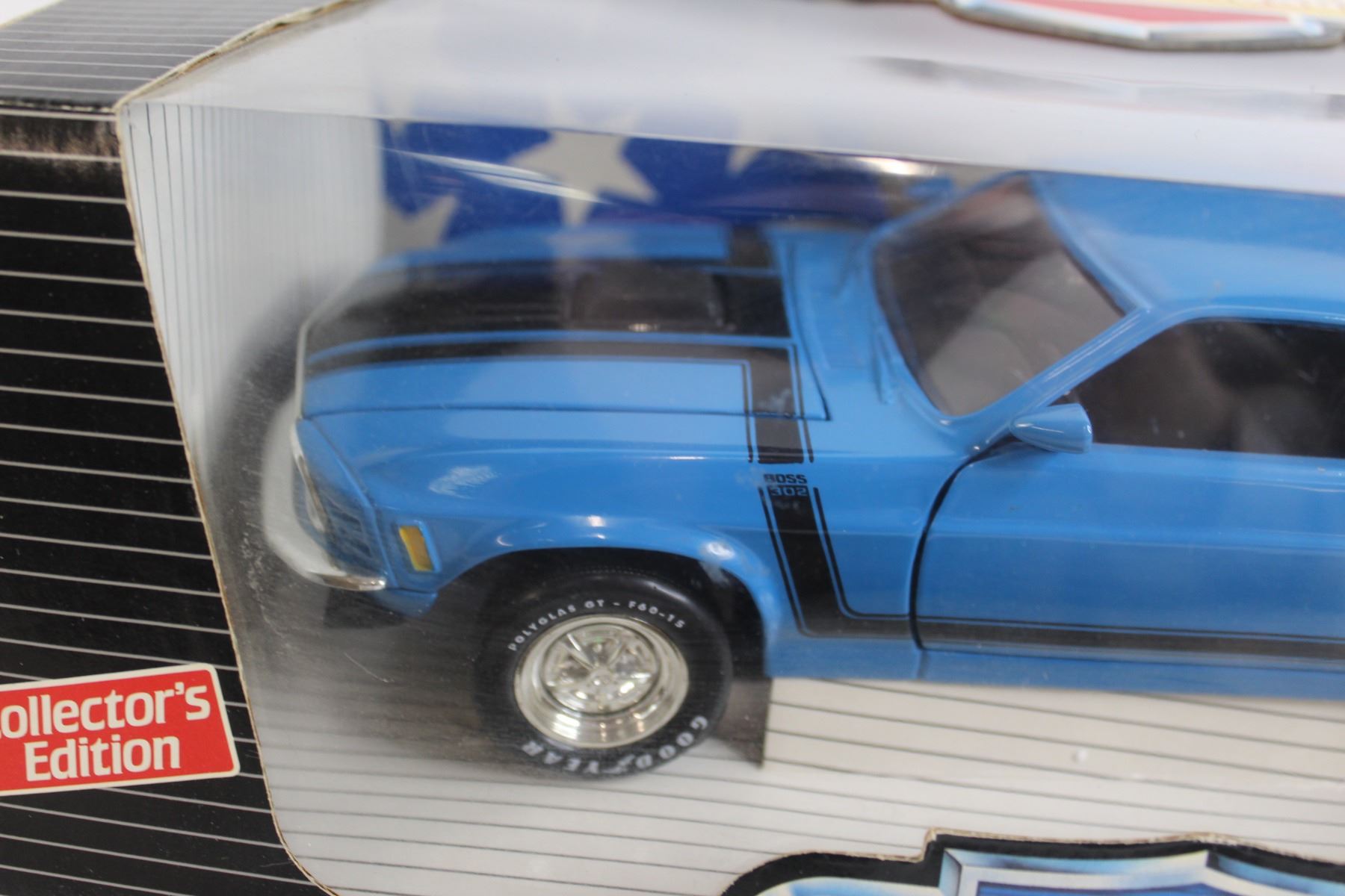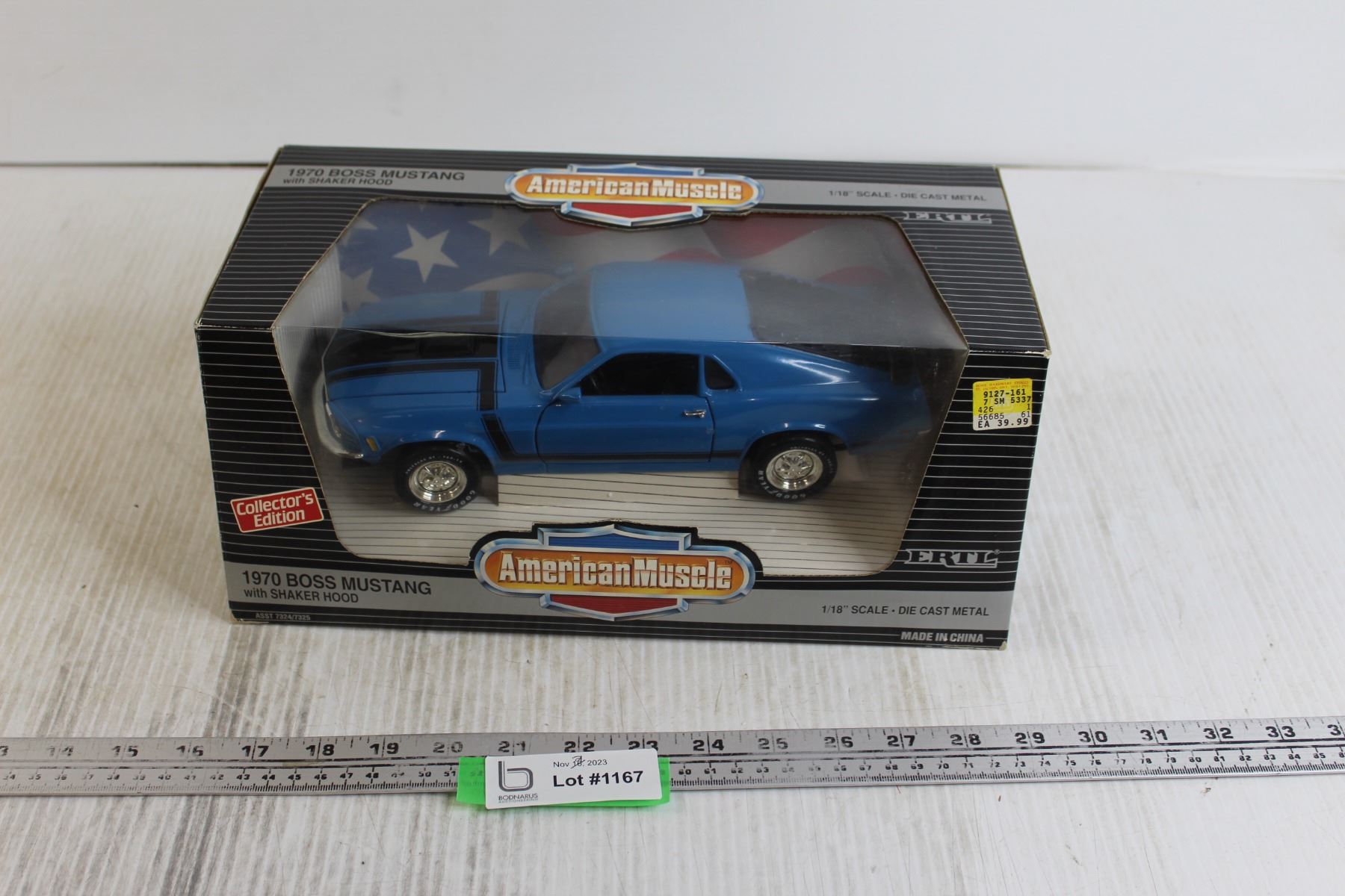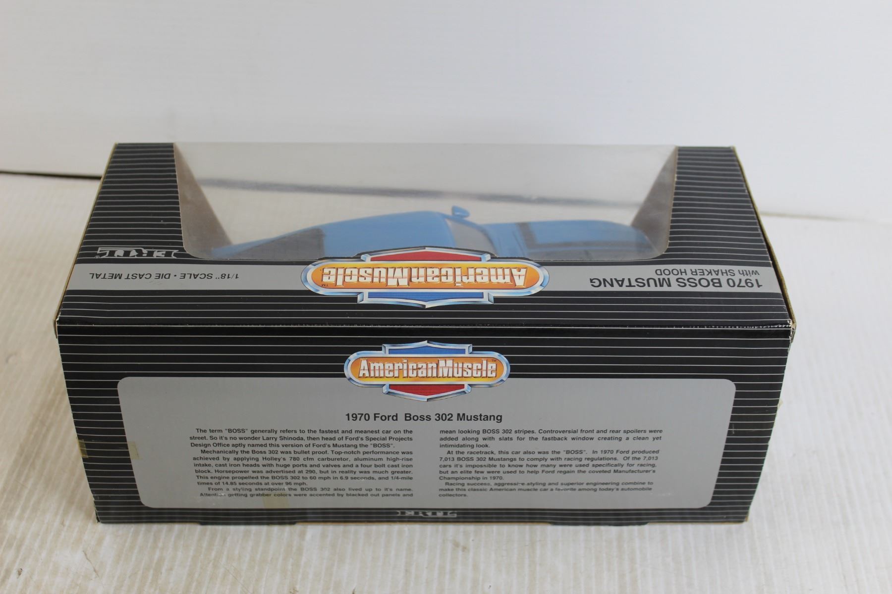 AmericanMuscle 1970 Boss Mustang with Shaker Hood Die Cast Metal Replica 1/18 Scale (NIB)