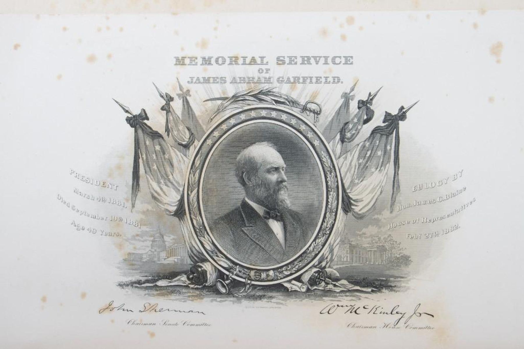 A miscellaneous group of Americana, including presidential history, Native American history, and a vintage street map of Philadelphia: 1.-2. BISHOP, JOSEPH BUCKLIN. Theodore Roosevelt and His Time: Shown in His Own Letters. New York: Charles Scribner's Son's, 1920. Vols. I and II. With illustrations. Good; edgewear, spines faded, bookseller label. 3.-4. HENDRICK, BURTON J. The Life and Letters of Walter H. Page. Vols. II and III. Garden City, New York: Doubleday, Page & Company, 1922. Top edges gilt. Good; spines faded and worn, inked owner's name. 5. BLAINE, JAMES G. Memorial Address Pronounced in the Hall of Representatives, February 27th, 1882, Before the Departments of the Government of the United States. Washington: Government Printing Office, 1882. Good; wear to corners and ends of spine, foxing. 6. [CLINTON, WILLIAM JEFFERSON.] Invitation to the Presidential Inauguration of William Jefferson Clinton and Albert Gore, Jr., 1997. In blue paper over boards gilt folder with color photo reproduction of the swearing-in. Very good condition. 7. THATCHER, B. B. Indian Biography: Manners, Customs: A Minute and Graphic Story of Early Indian Life in the United States--A Valuable Compendium to American History, Wars. New York and Akron: D. M. MacLellan Book Company, 1910. Fair-Good; front inner hinge split, foxing on first pages, owner's stamp. 8. HUBBARD, ELBERT. Abe Lincoln and Nancy Hanks: Being one of Elbert Hubbard's Famous Little Journeys to Which is Added for Full Measure a Tribute to the Mother of Lincoln. East Aurora: The Roycrofters, 1920. First edition. Fair; loose spine/splits to inner hinges, wear to corners and ends of spine. 9. RAMSAY, DAVID. The Life of George Washington, Commander in Chief... Ithica: Mack, Andrus, & Woodruff, 1840. Poor; leather scratched, worn, losses; cover nearly detached; extensive foxing, some dampstains. 10. GROSS, ALEXANDER. The Premier Map of Philadelphia Camden and Vicinity, Unchallengeably the Most Up To Date Street Map Published... New York: Geographia Map Co., n.d. (c. 1940s?). Map measures 44" x 36". Good condition, no tears.