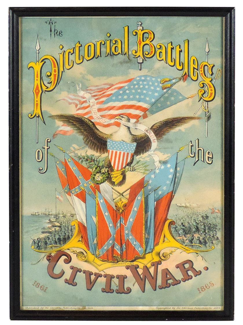 Americana litho on paper, The Pictorial Battles of the Civil War, copyrighted 1884, publ by Sherman Publishing Co.-New York, prof matted & framed, VG/Exc cond, 16"H x 11"W.