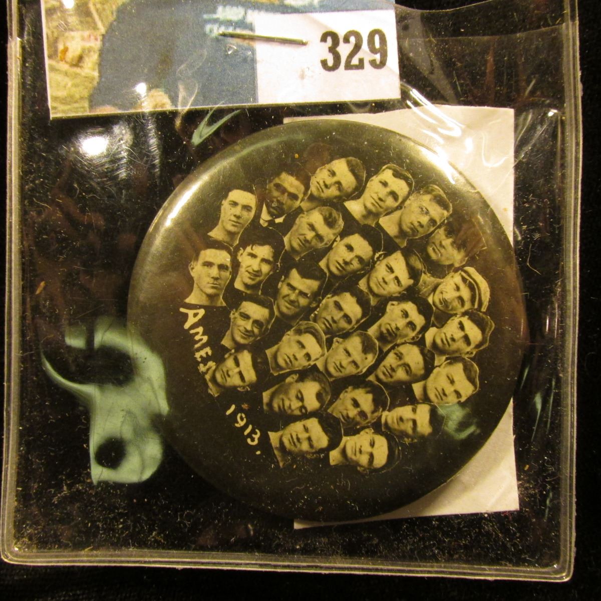 "Ames 1913" Pin-face, no pin for back, 'Doc' notes "Ames" Football name used for "Iowa State College".