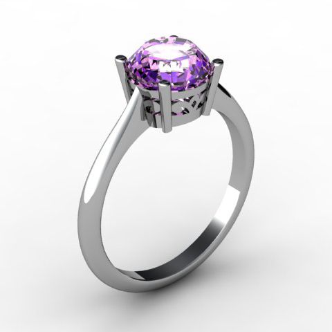 Amethyst 1.30 ctw Ring 14kt White Gold **|**|** Mainstone: Amethyst ; CTW: 1.30 ; Shape: Round ; Gem Size: 7mm ; Metal / Purity: 14kt White Gold ; MSRP: $500