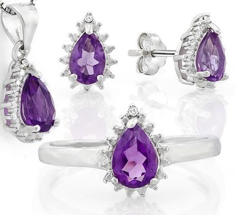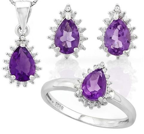 Great value! 2.6CTW of genuine Amethyst pear cut gemstones set in Platinum over Sterling Silver for added brilliance. The metal creates a halo design look. We are including Sterling Silver 18" twist chain and friction backs to make the gifting (to yourself or a special someone) easy! Size 8. 4.6g