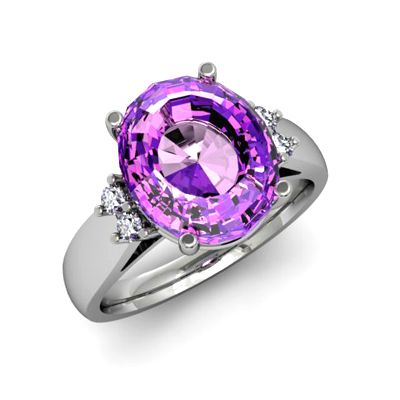 Amethyst 4.50 ctw & Diamond Ring 14kt White Gold **|**|** Mainstone: Amethyst ; Total CTW: 4.50 ; Shape: Oval ; Gem Size: 12x10mm ; Metal / Purity: 14kt White Gold ; MSRP: $1500