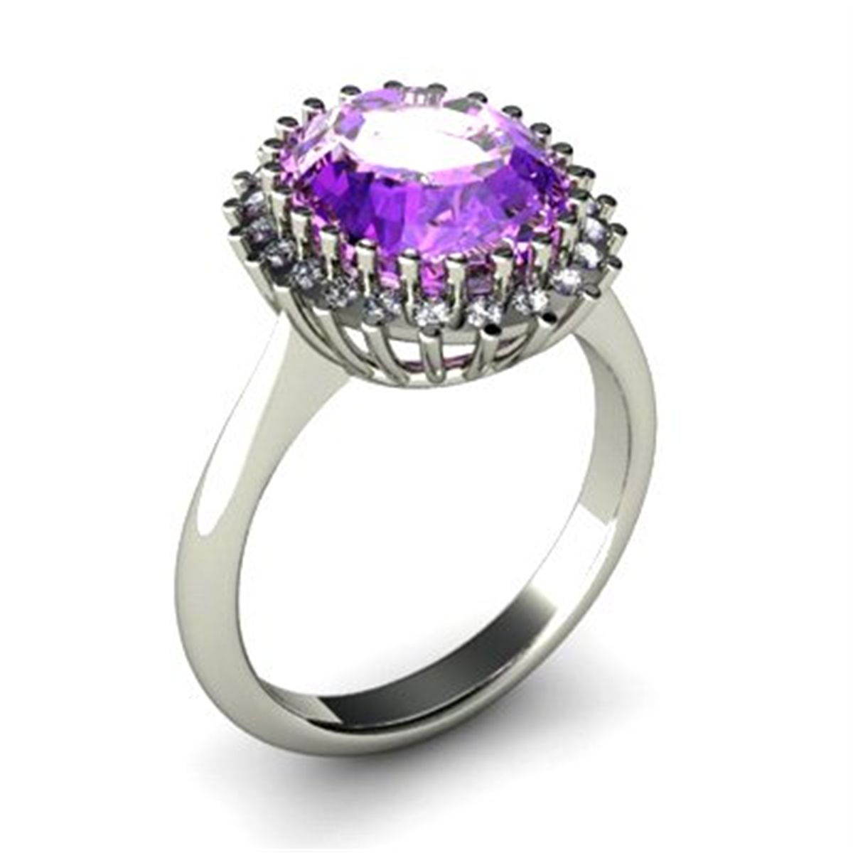 Mainstone: Amethyst ; Total CTW: 4.72 ; Metal Purity: 14kt ; Metal: W/Y Gold ; Diamond Count 1: 22 Round Cut ; Diamond CTW 1: 0.22 ; Diamond Clarity: SI-I ; Diamond Color: G-H ; Gem Count 1: 1 Oval Cut ; Gem CTW 1: 4.5 ; Gem Size(mm): approx. 12x10mm ; Gem Clarity: AA-AAA ; Weight(g)5.4; Availability: 3-10 Business days, ready to ship, with certification of appraisal will take 2 weeks. ; MSRP: $2100