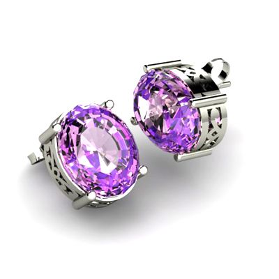Amethyst 4.80ctw Earring 14kt White Gold **|**|** Mainstone: Amethyst ; Total CTW: 4.80 ; Shape: Oval ; Gem Size: 10x8mm ; Metal / Purity: 14kt White Gold ; Gem Count 1: 2 Oval Cut ; MSRP: $1300
