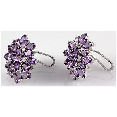 Amethyst 42.50 ctw Flower Design Earring 0.925 Silver **|**|** Mainstone: Amethyst ; CTW: 42.50 ; Shape: Oval Cut ; Gem Size: 7x5mm ; Metal / Purity: 0.925 Sterling Silver ; Grams: 12.08 ; MSRP: $700