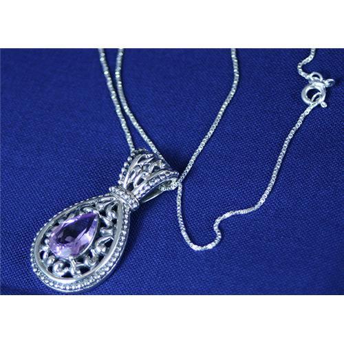 <tr><td>Title:Amethyst Antique Style Sterling Silver necklace</td></tr>