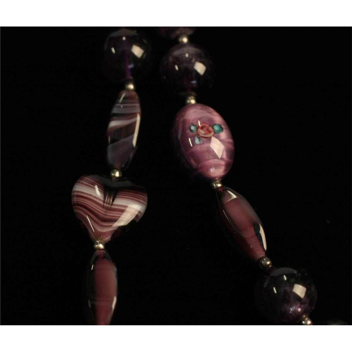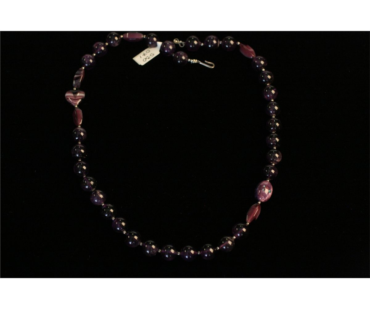 Amethyst Beaded Necklace, with one heart shaped bead, 22" Long, Beads Approx. 1/2" Dia., -530071-