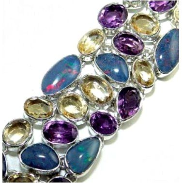 Silver & Amethyst, Citrine & Fire Opal Bracelet