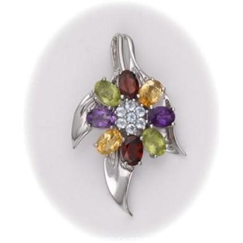Solid Sterling Silver sets Genuine Gemstones and Simulated Diamonds to create this large, colorful, Flower Pendant. The multi colored petals consist of 2 of each of the following Genuine Gemstones: Citrine, Amethyst, Peridot and Garnet. Large Flower sits on a leaf of solid Sterling Silver. Stunning!<BR><BR>This is a brand new item and arrives in a velvet gift box with satin lining.<BR><BR>Please note: All items are 100 % Satisfaction guaranteed. If you don’t LOVE your purchase, simply return it for a full refund of your purchase price less shipping charges.<BR><BR>Seller is bonded and maintains Excellent Feedback so that you can shop with confidence.<BR><BR>*For more items like this one, please visit this link: http://stores.ebay.com/Jewelry-Diamonds-Gold-Silver-Italy<BR><BR>For more information on EBAY Live Auctions, please visit this link: http://pages.ebay.com/liveauctions/help/basics/tutorialbrowse.html<BR><BR>Gemstone: Genuine Garnet, Peridot, Citrine & Amethyst