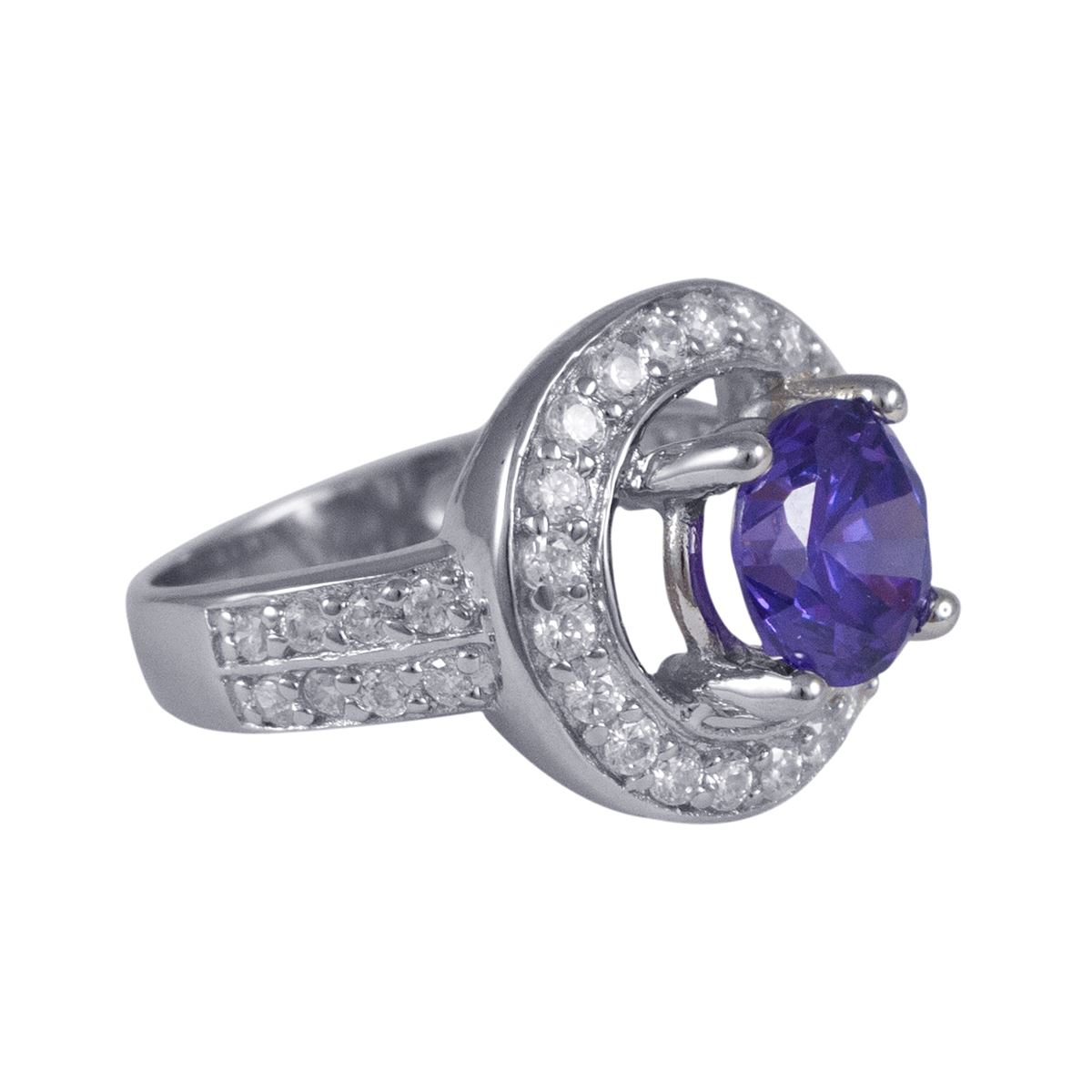Amethyst Color Round CZ, Surrounded With White Czs, Sterling Silver Ring Size 6