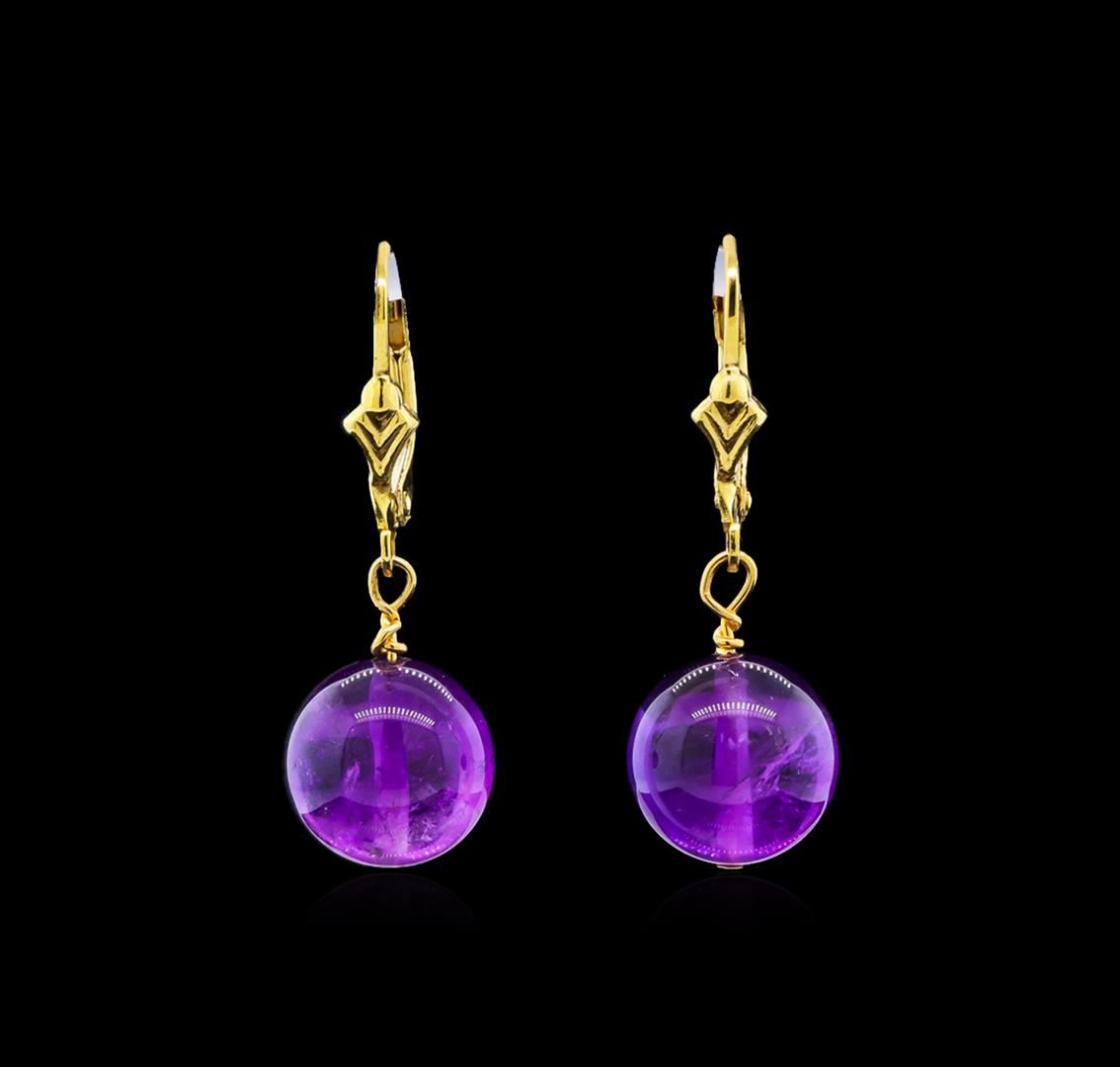 Amethyst Earrings - 14KT Yellow Gold. Total Weight: 3.6 grams.
