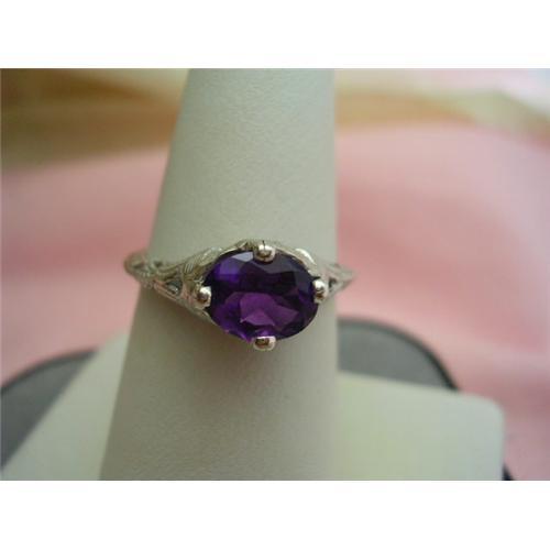 Beautiful Amethyst Filigree Ring with 6X8 Oval Amethyst with rich purple color. The ring is