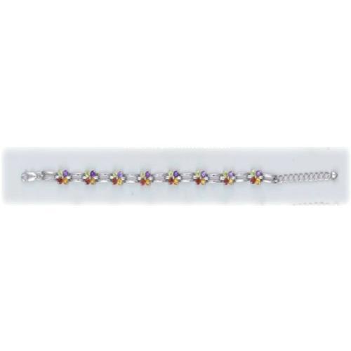Solid Sterling Silver sets this Floral inspired, Tennis Bracelet. Set with following Genuine gemstones: Amethyst, Peridot, Garnet and Citrine. Sparkling and colorful! Exquisite!