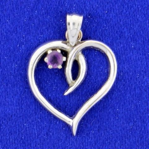 In 14k white gold this pendant is 7/8inches long with bale. It has a 3mm round amethyst gemstone. 1.7g