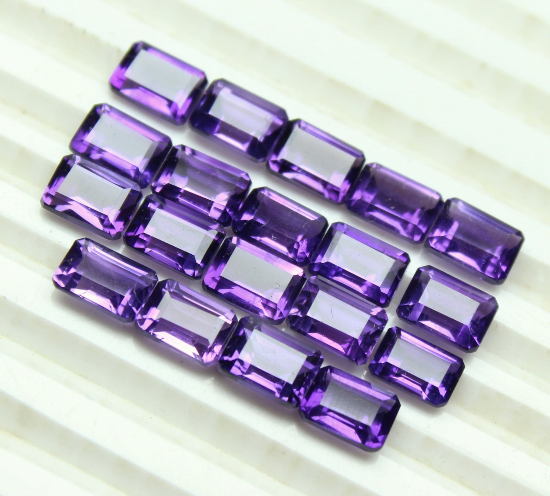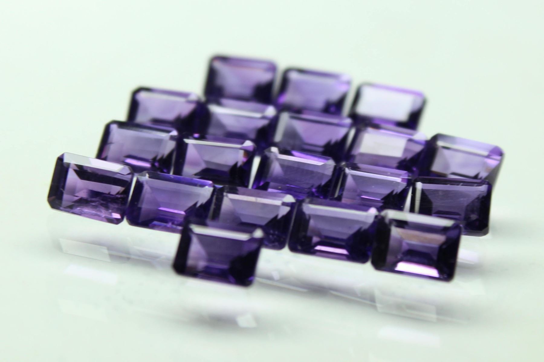 GEMSTONE - AMETHYST , SHAPE - OCTAGON , SIZE - 7X5 MM , QUANTITY - 100 PIECES , WEIGHT - 94.00 Cts. , COLOR - PURPLE , NATURAL/LAB CREATED - NATURAL , TREATMENT - NONE , CUT GRADE - EXCELLENT , COUNTRY OF ORIGIN - ZAMBIA , COUNTRY OF MANUFACTURE - INDIA